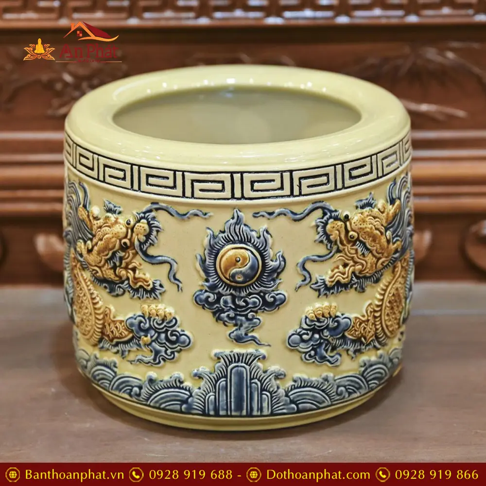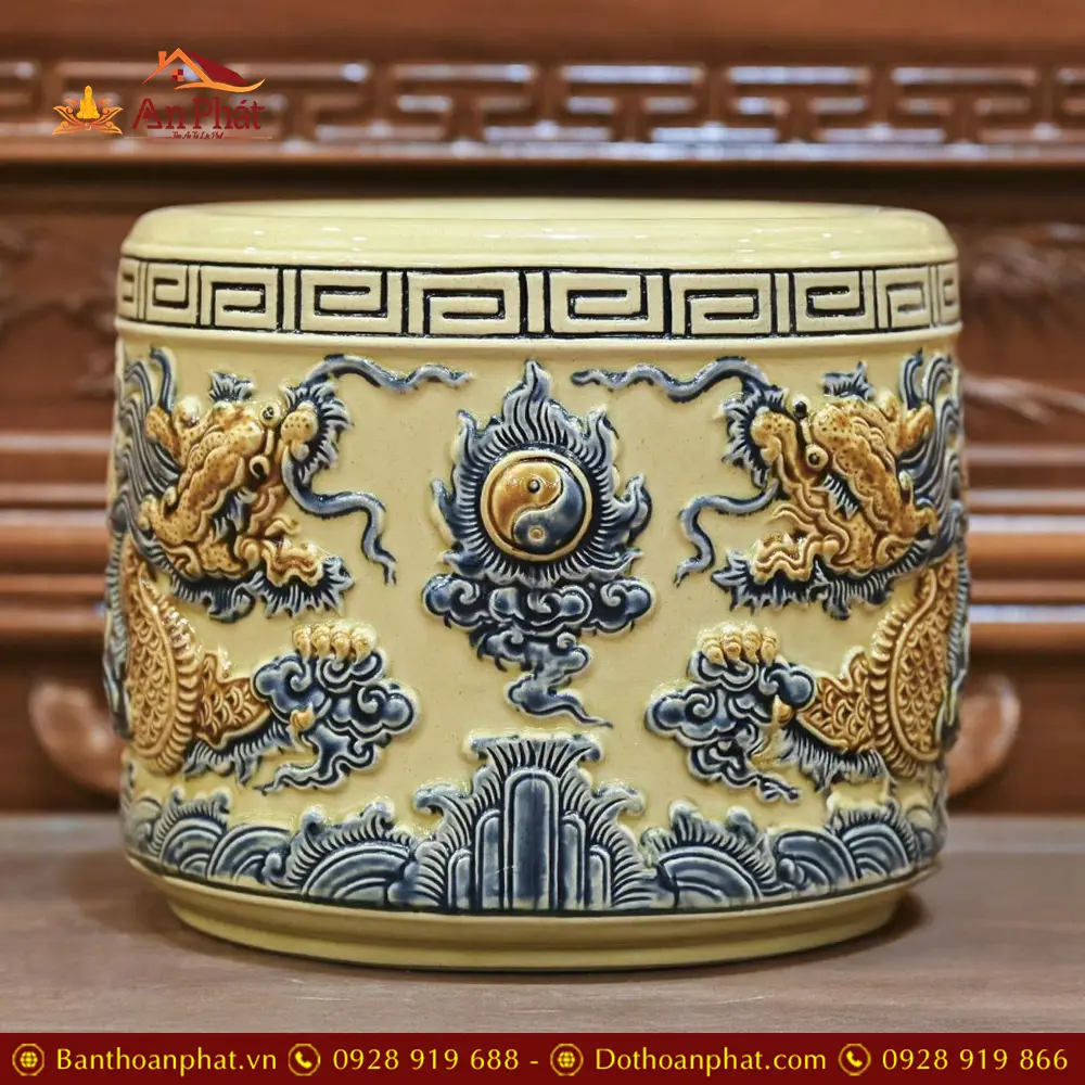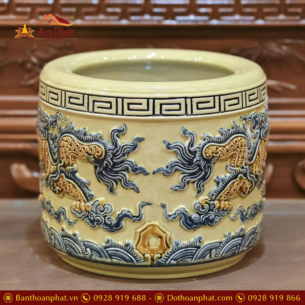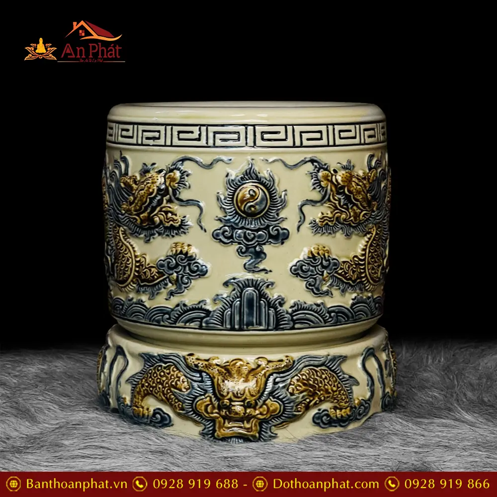 Bát Hương Hoàng Thổ Bát Tràng Rồng Đắp Nổi DT676