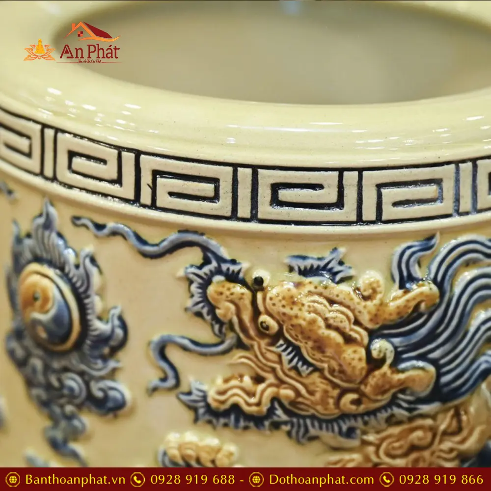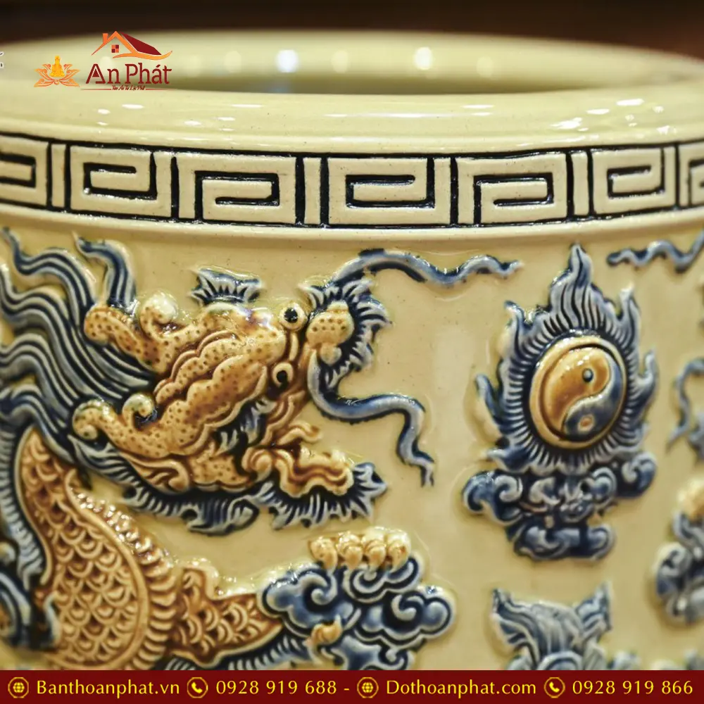 • Chất liệu: Men Hoàng Thổ Đắp Nổi