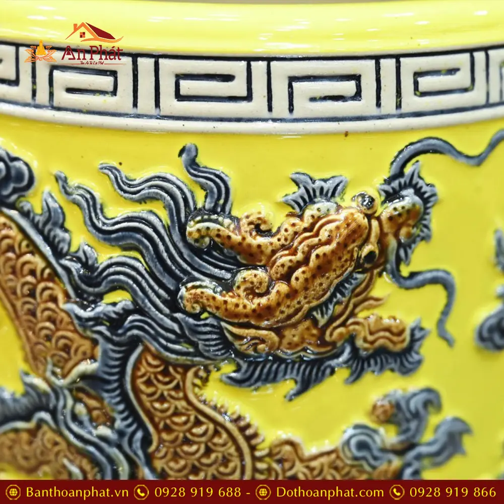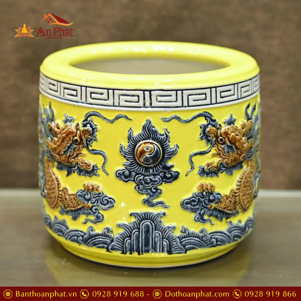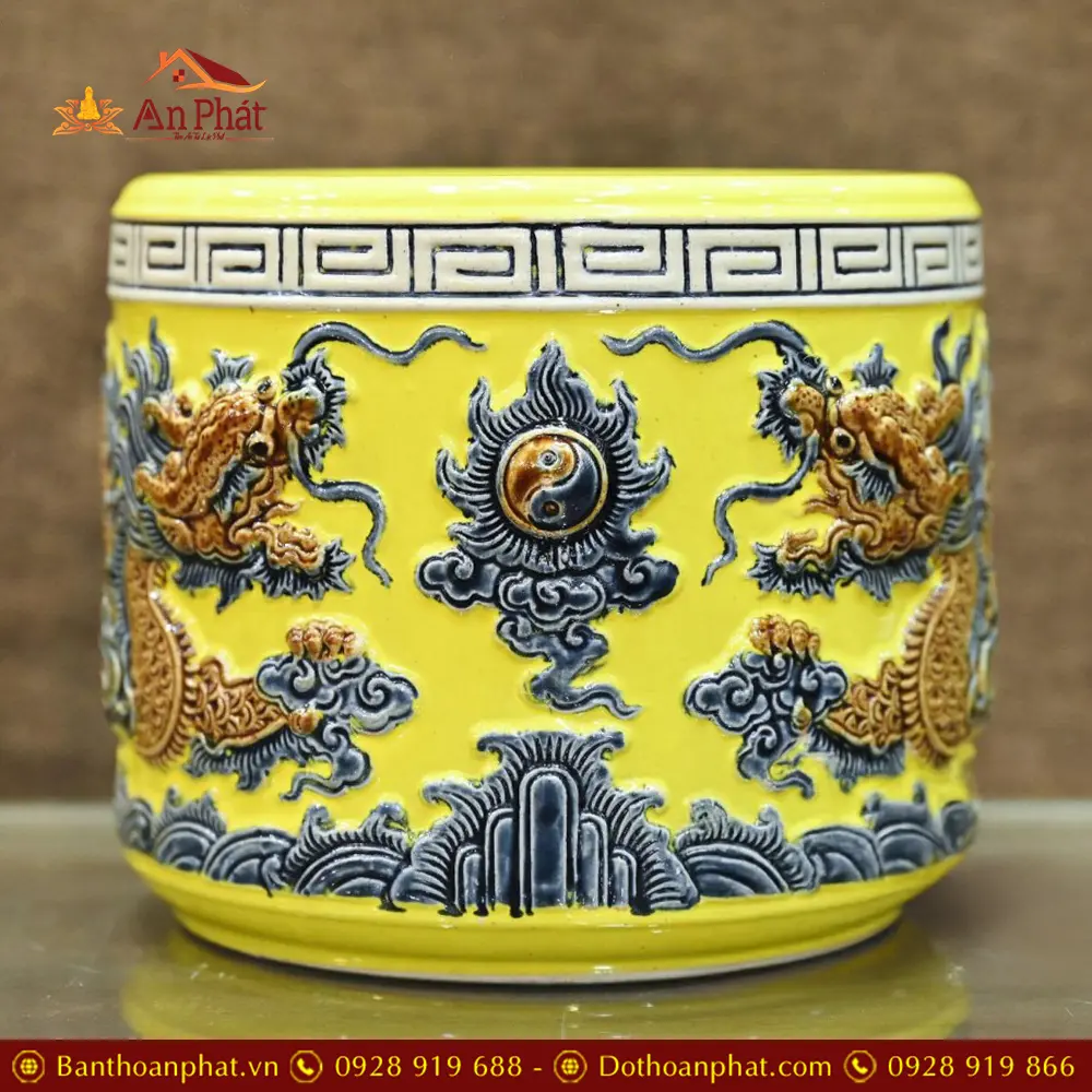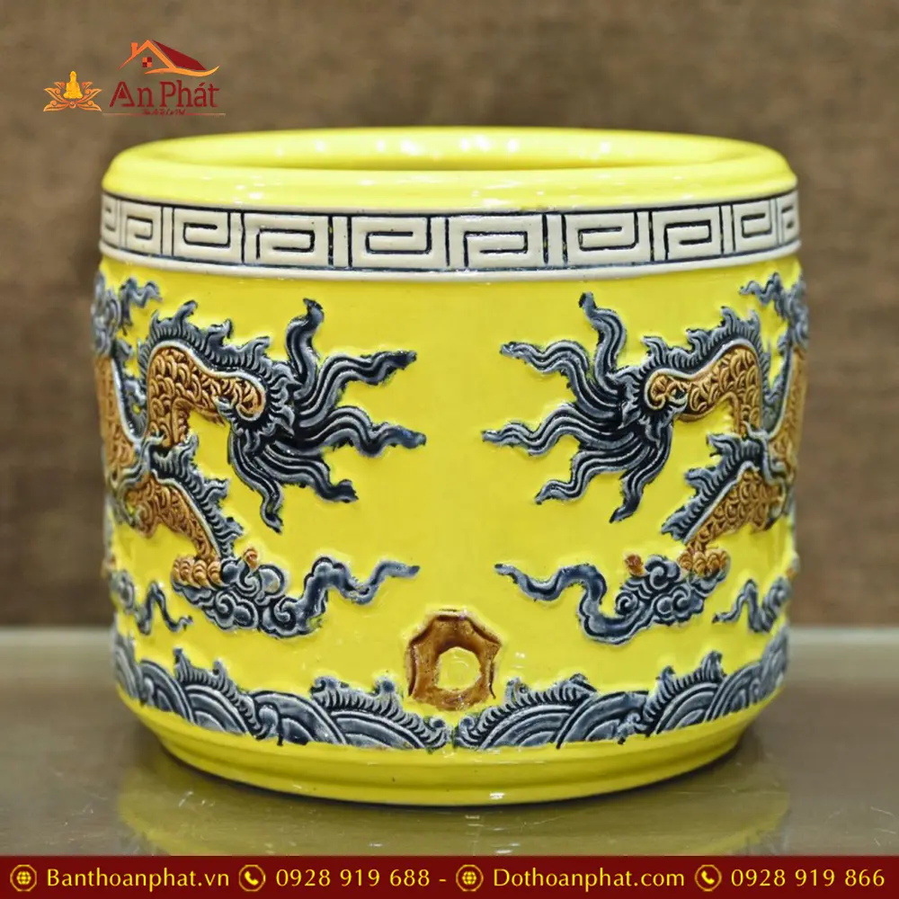Bát Hương Sứ Bát Tràng Men Vàng Rồng Đắp Nổi DT683