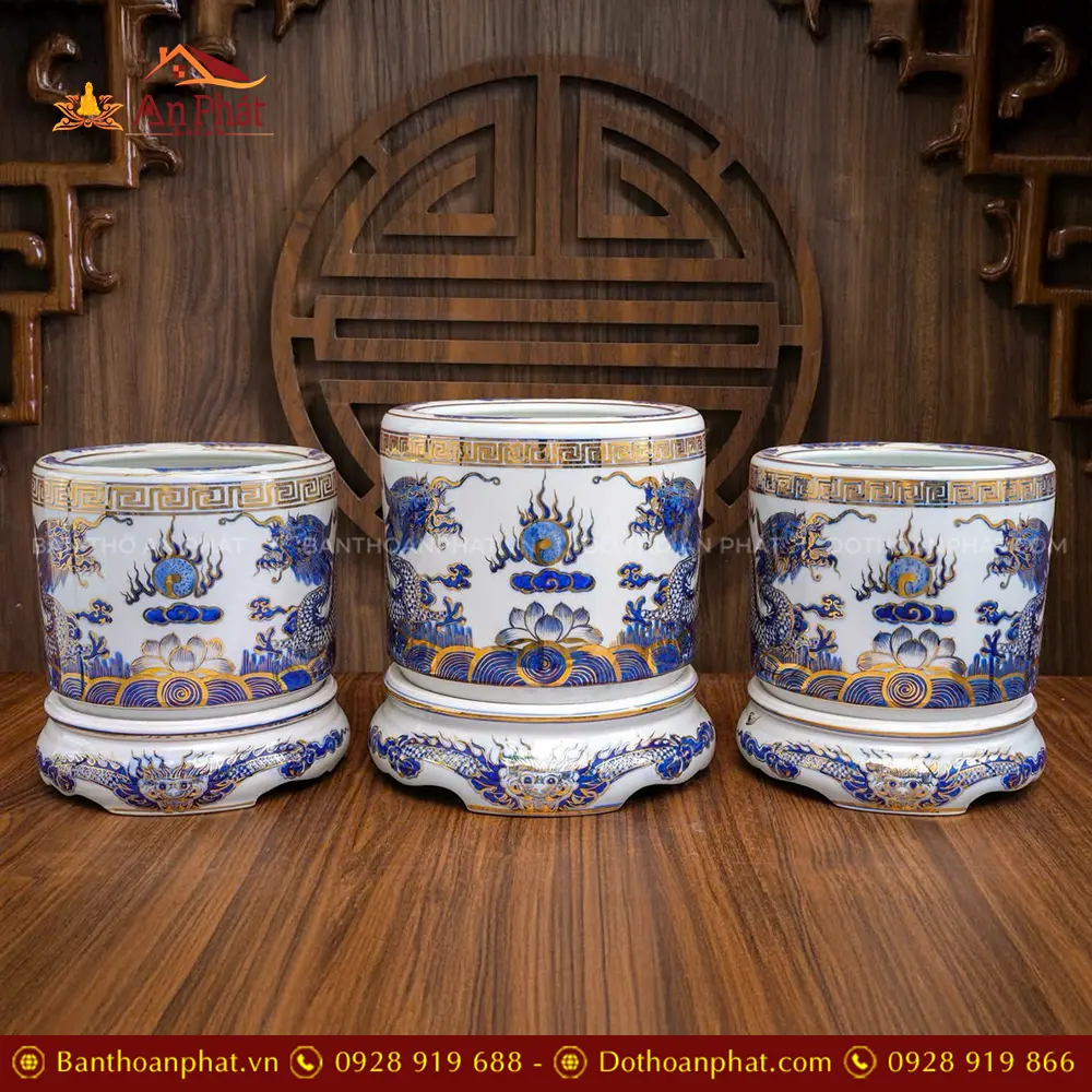 Bát Hương Vẽ Vàng Cao Cấp Men Lam Bát Tràng DT1047