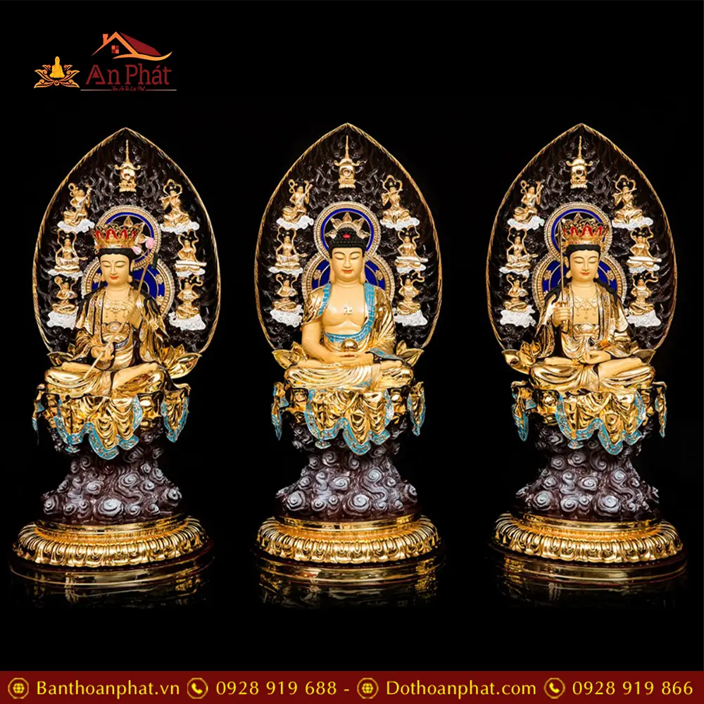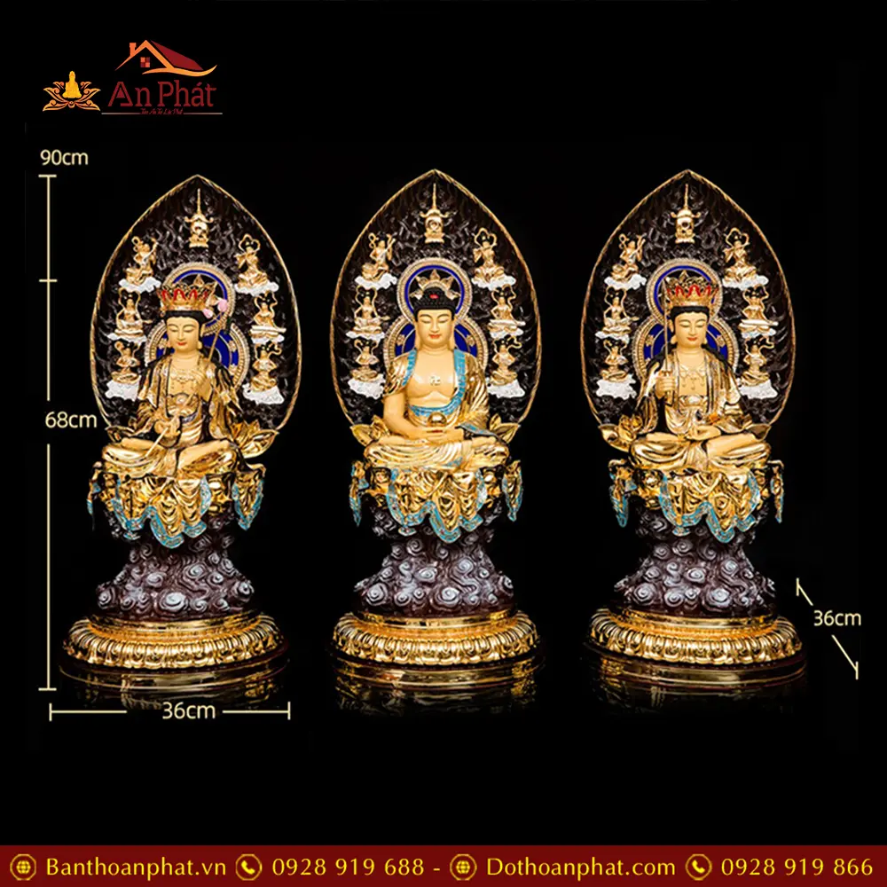 Bộ Tượng Hoa Nghiêm Tam Thánh Đồng Dát Vàng Cao Cấp T2715