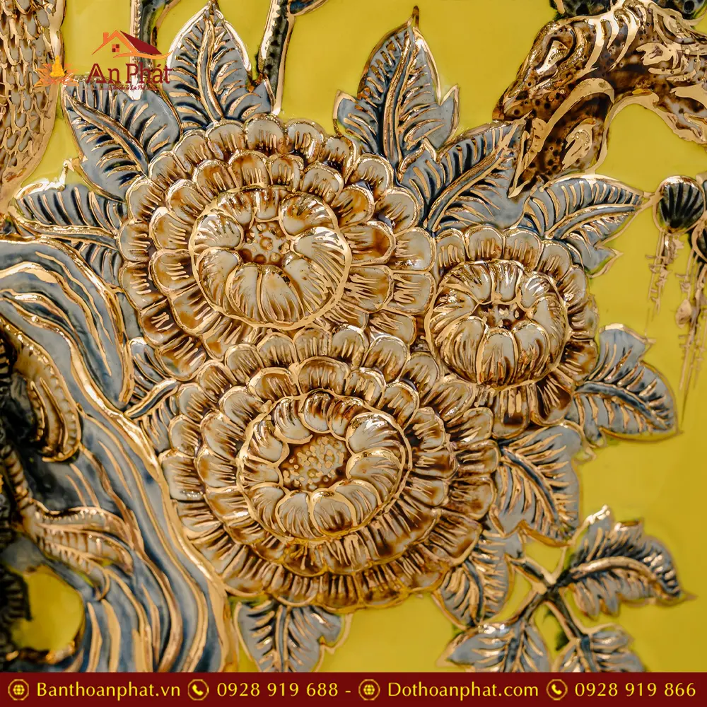 Choé Phong Thuỷ Công Đào Kênh Men Vàng Đắp Nổi Vẽ Vàng DT983