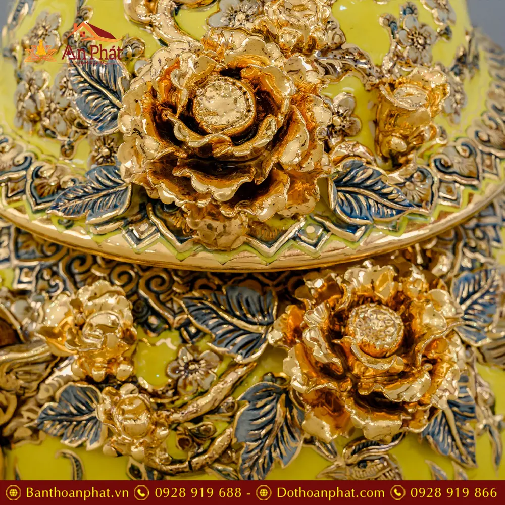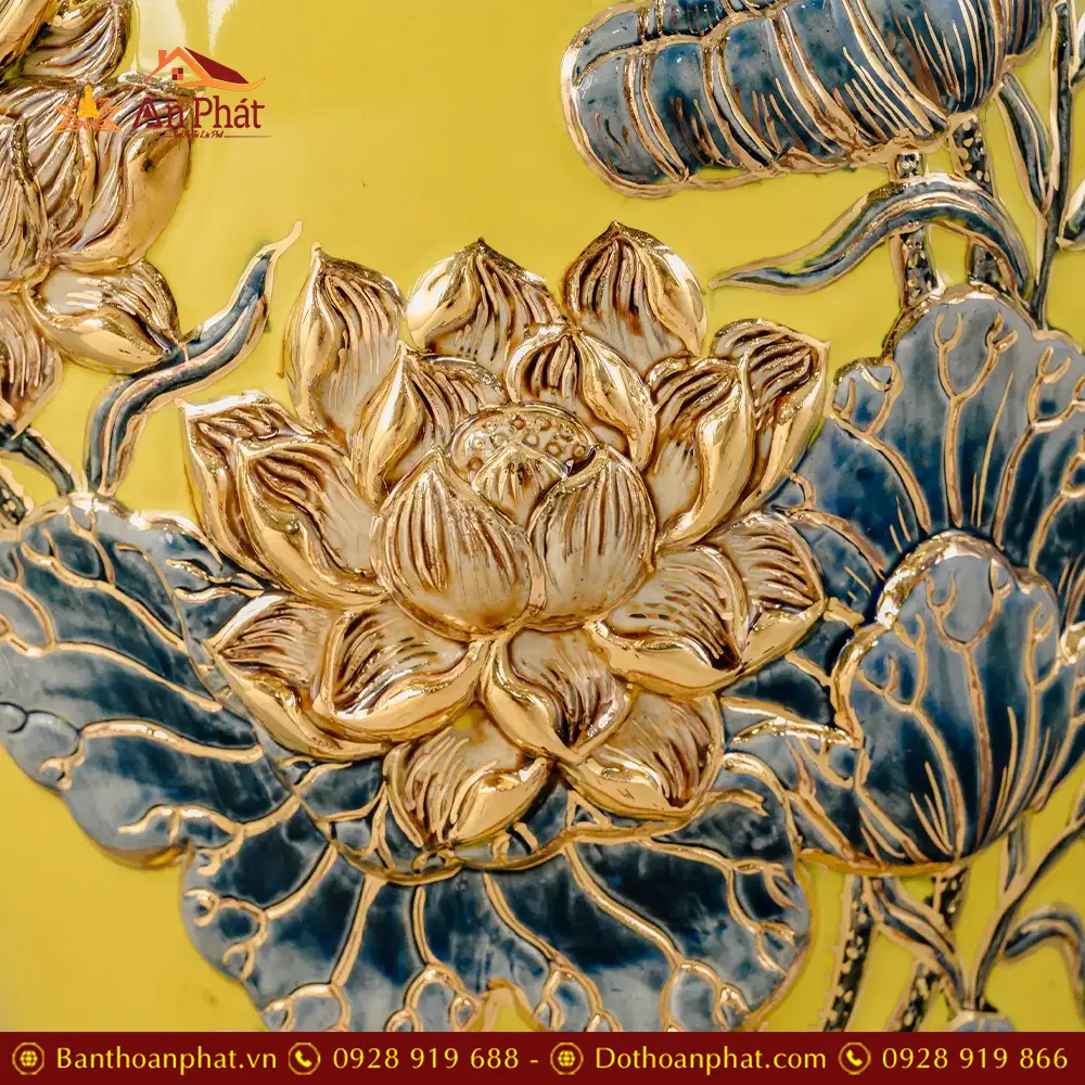 • Chất liệu: Men Màu Vàng Đắp Nổi Vẽ Vàng
