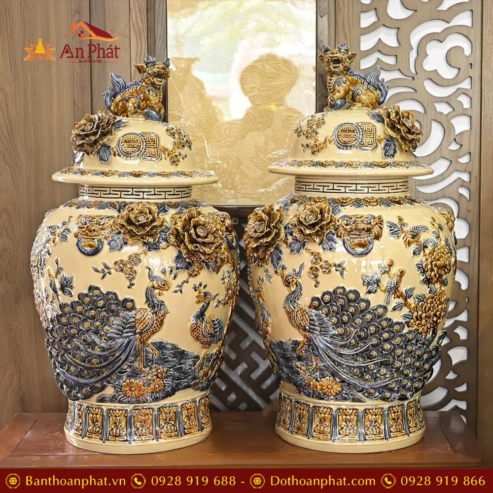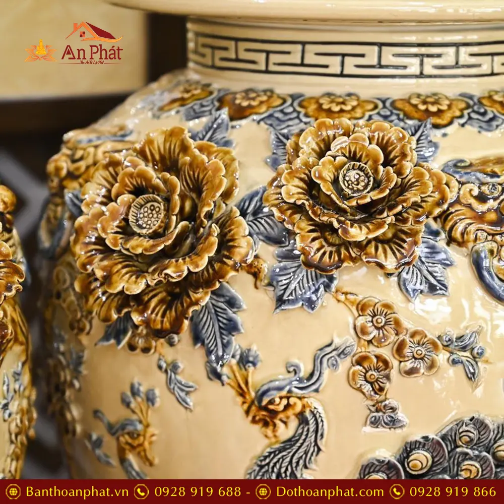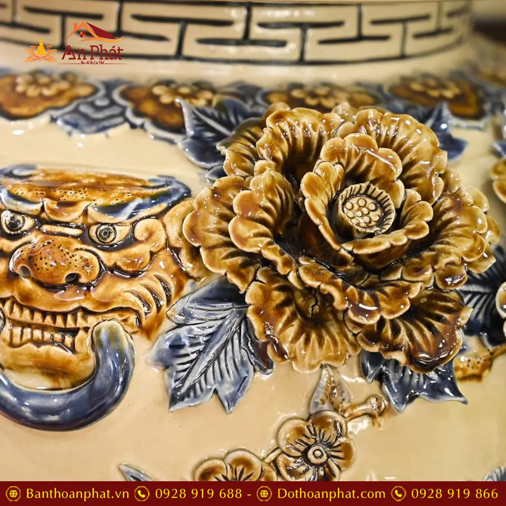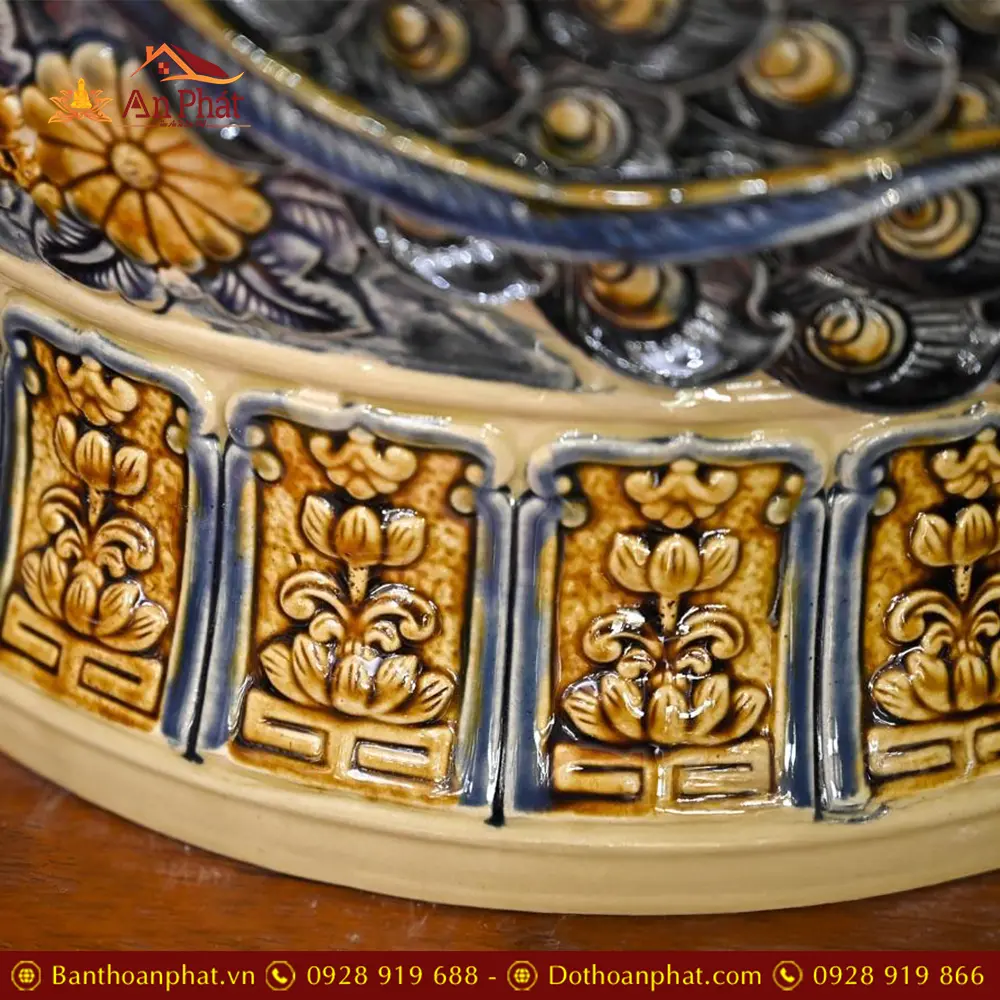 • Chất liệu: Men Hoàng Thổ Đắp Nổi