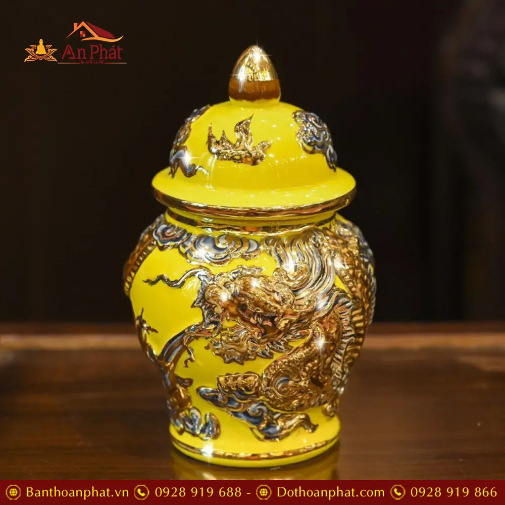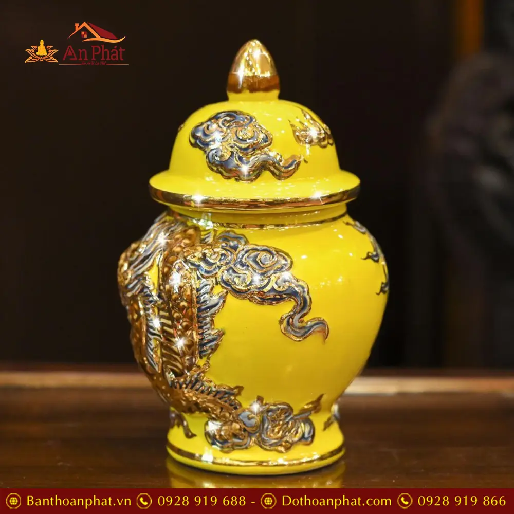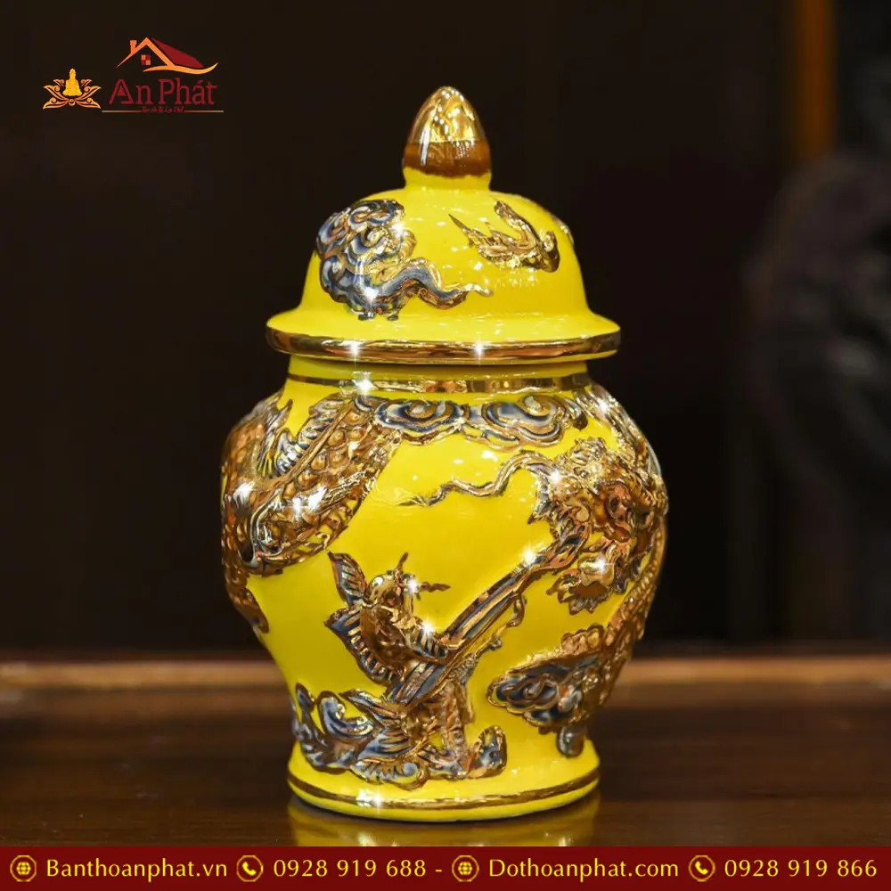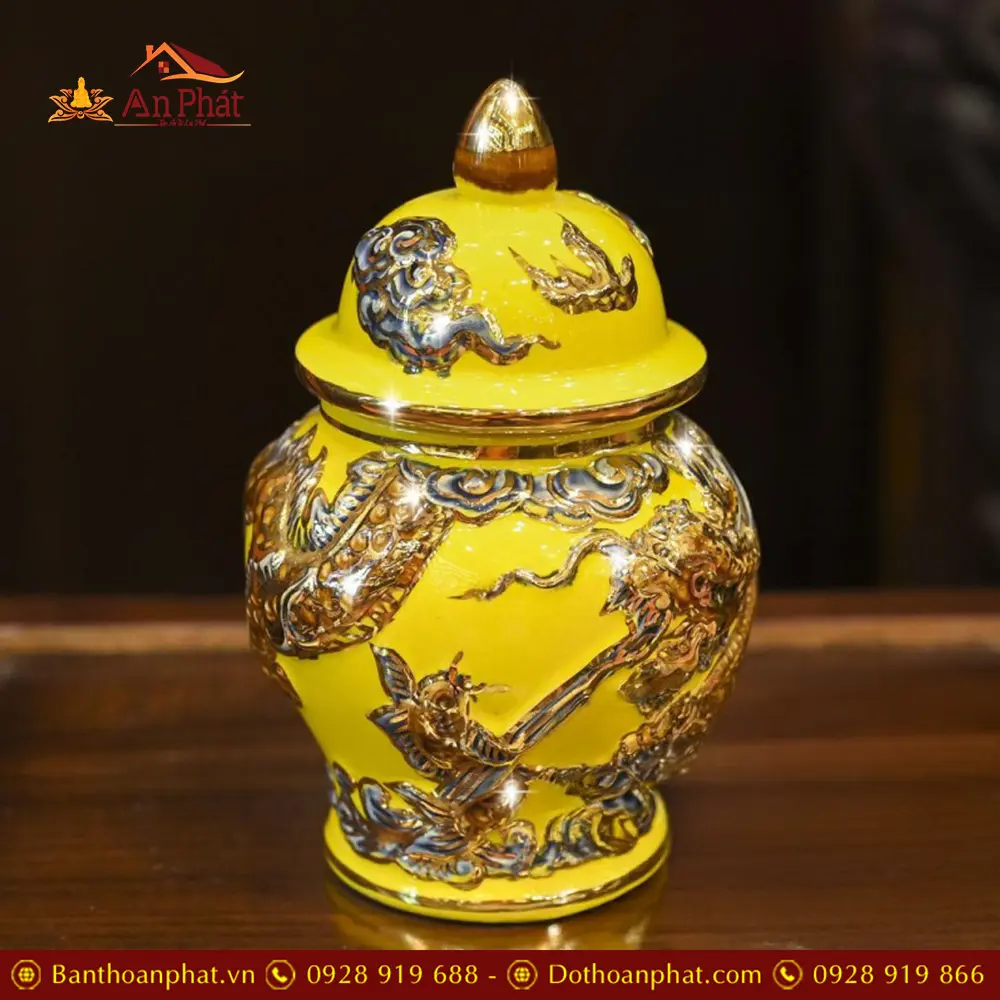 Choé Thờ Gốm Bát Tràng Đắp Nổi Rồng Vẽ Vàng DT745