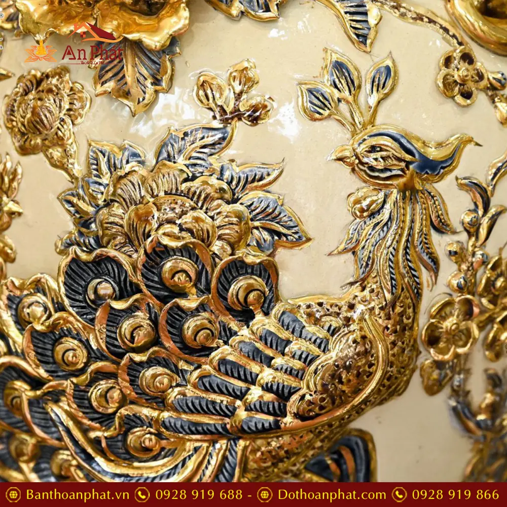 Choé Thờ Hoàng Thổ Vẽ Vàng Cao Cấp Công Đào Kênh Đắp Nổi DT975