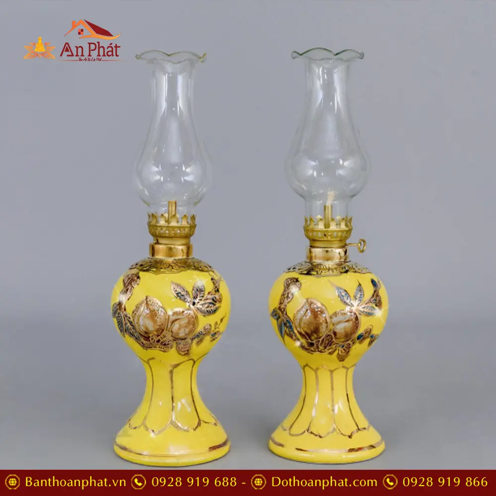 Đèn Dầu Thờ Gốm Vàng Bát Tràng Đắp Nổi Vẽ Vàng DT778