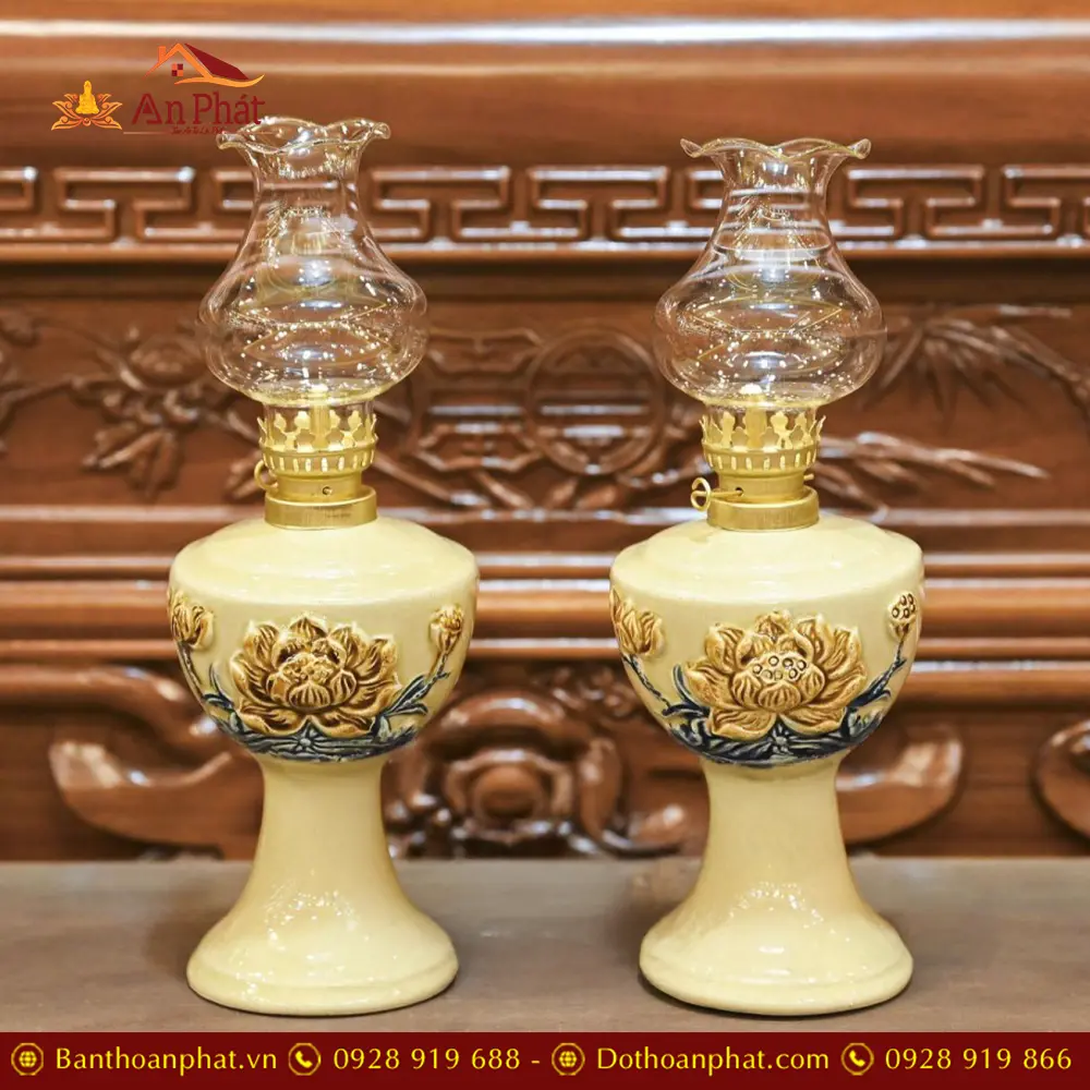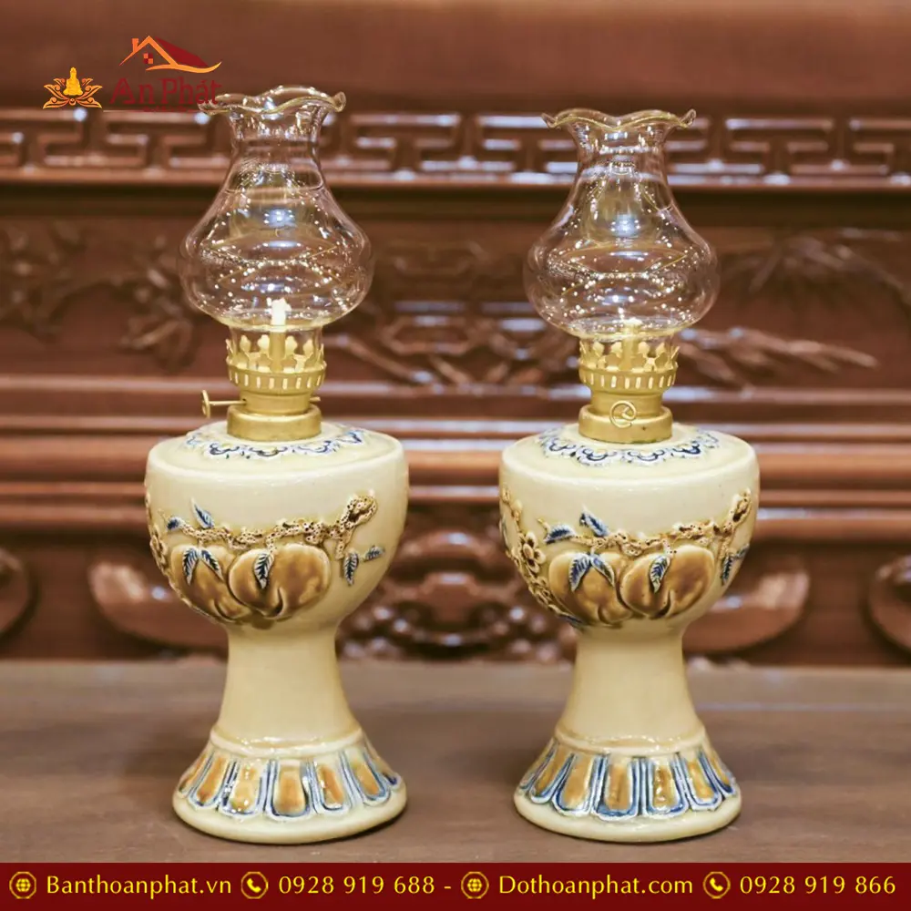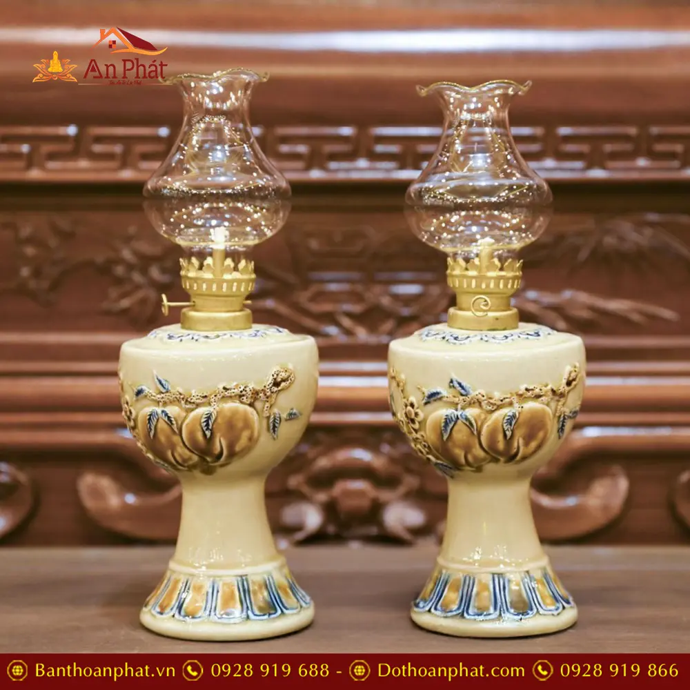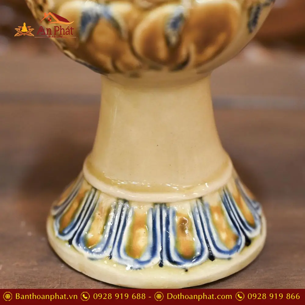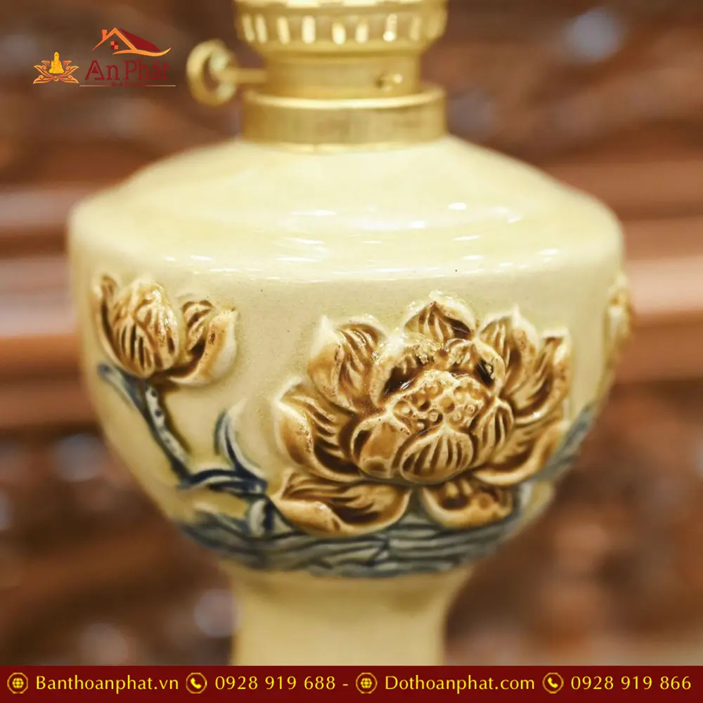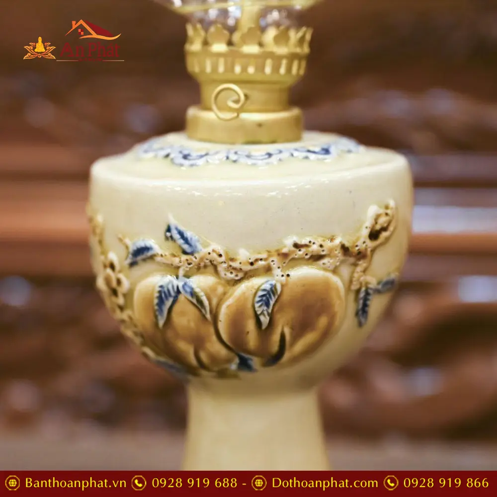 Đèn Dầu Thờ Men Hoàng Tộc Đắp Nổi Bát Tràng DT769