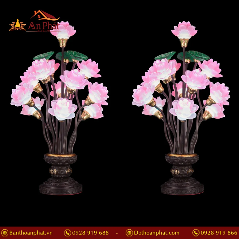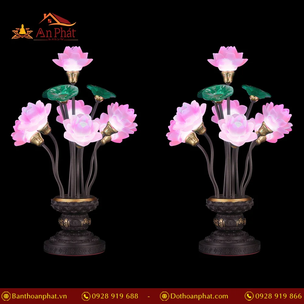 Đèn thờ điện lưu ly hoa sen nhiều màu