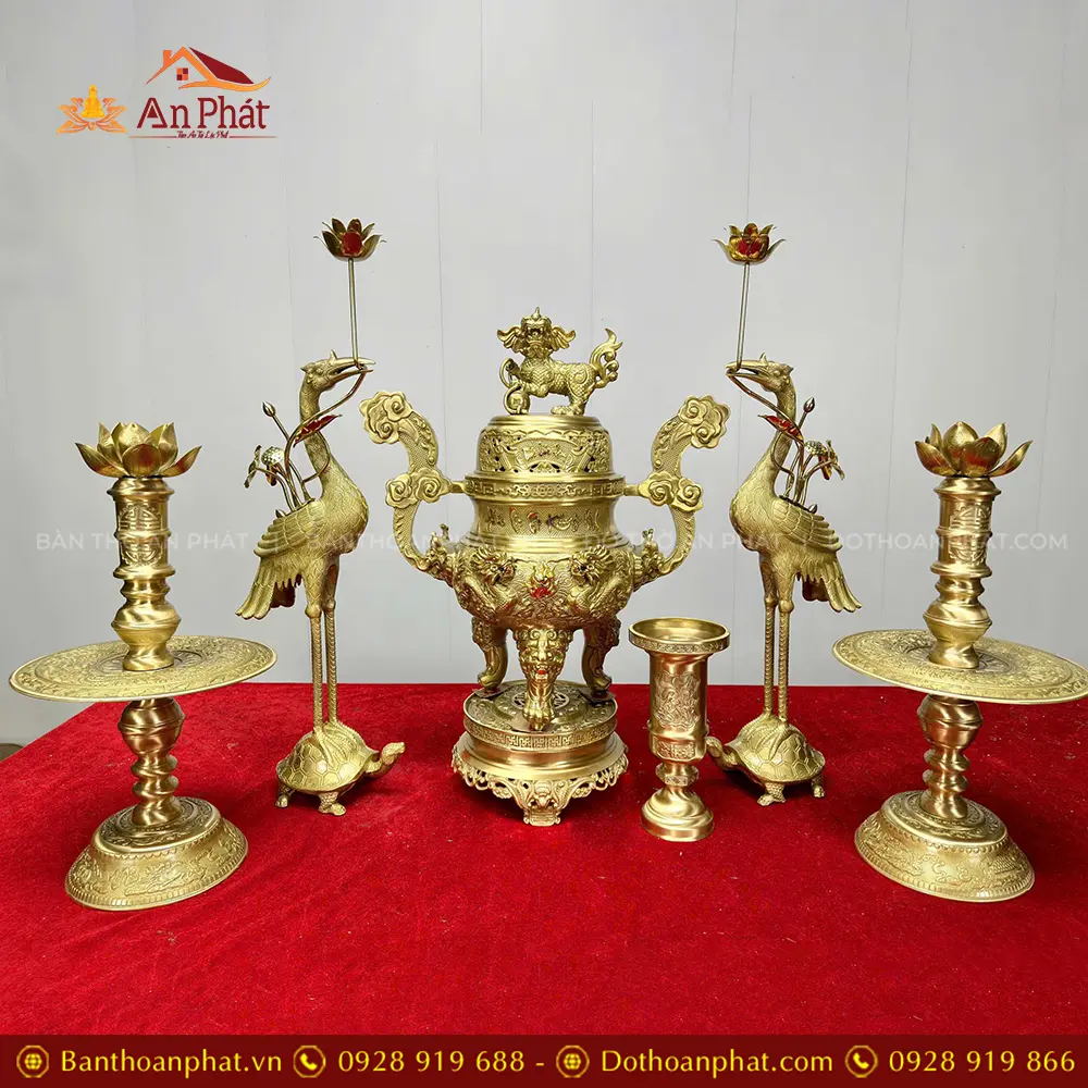 Đỉnh Hạc Bằng Đồng Kèm Chân Nến Cao Cấp Mẫu Cuốn Thư Vàng DT1084