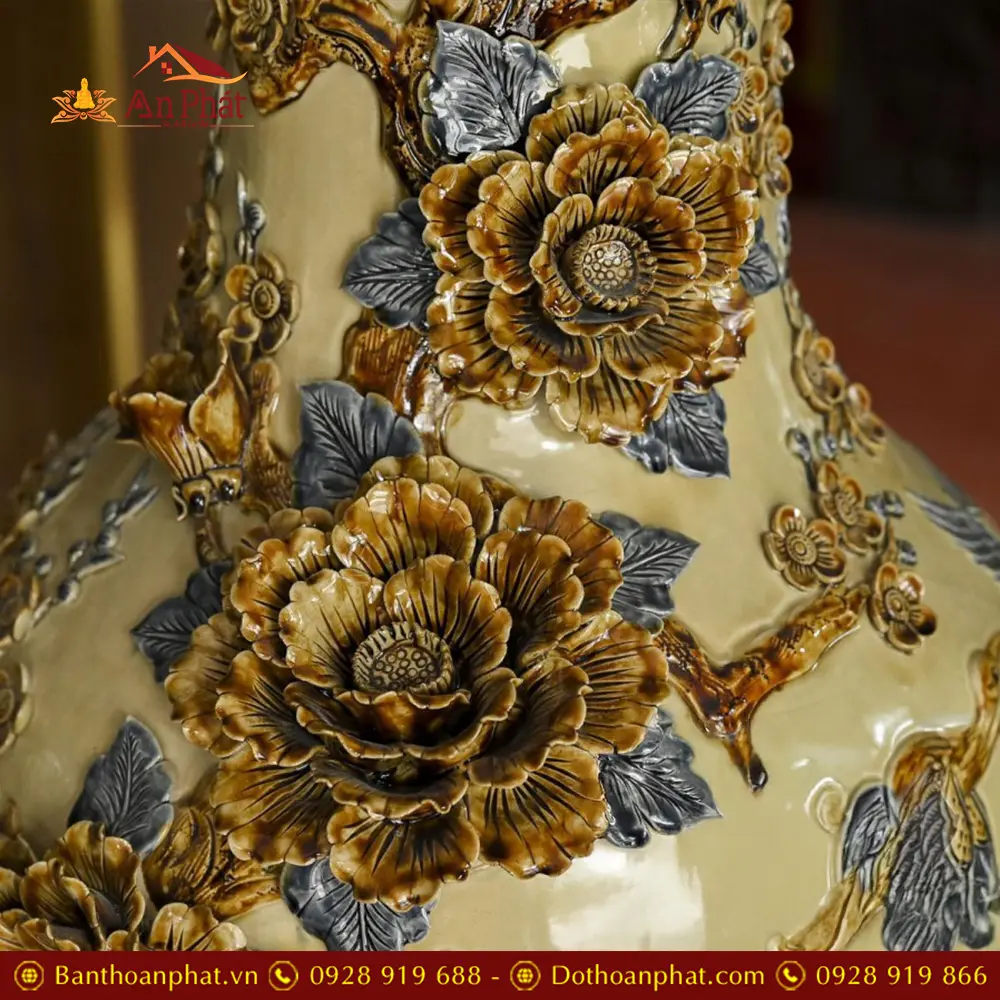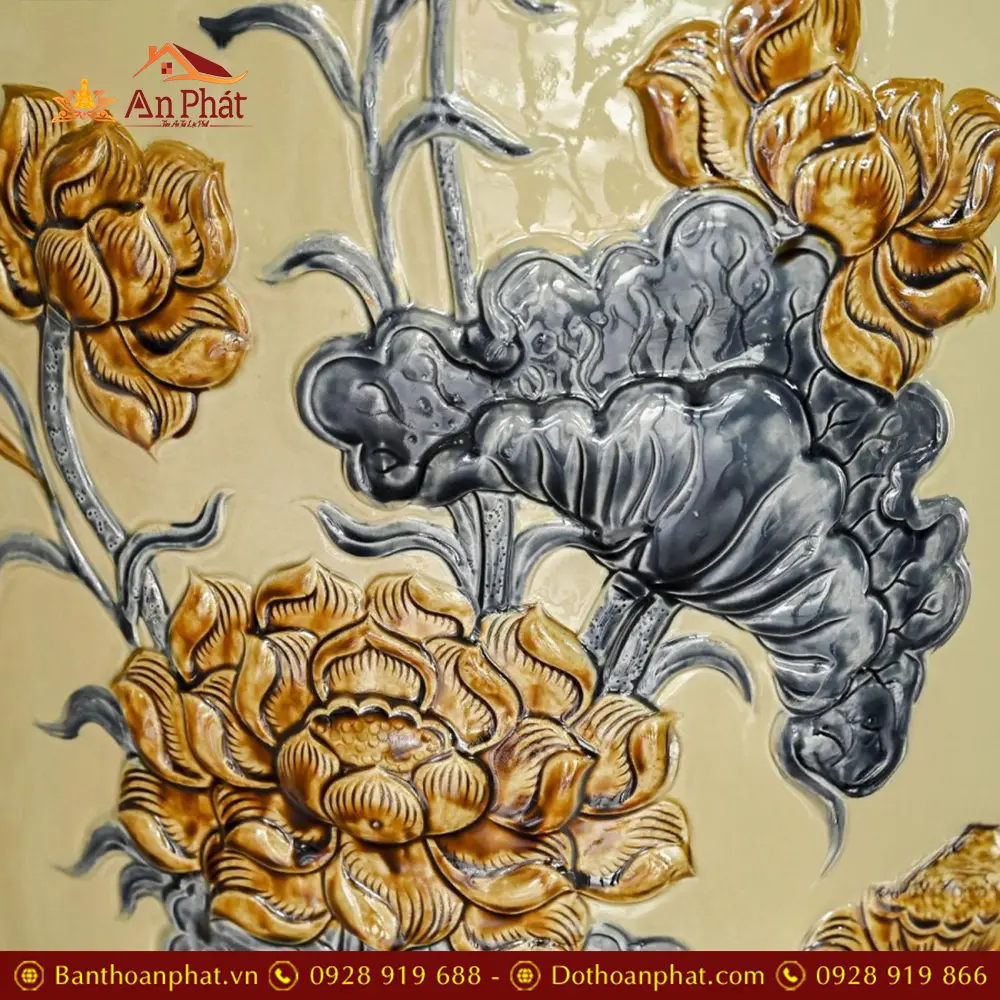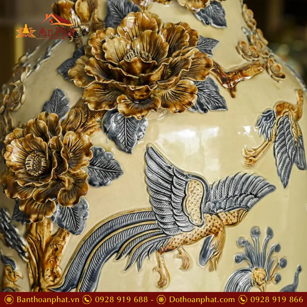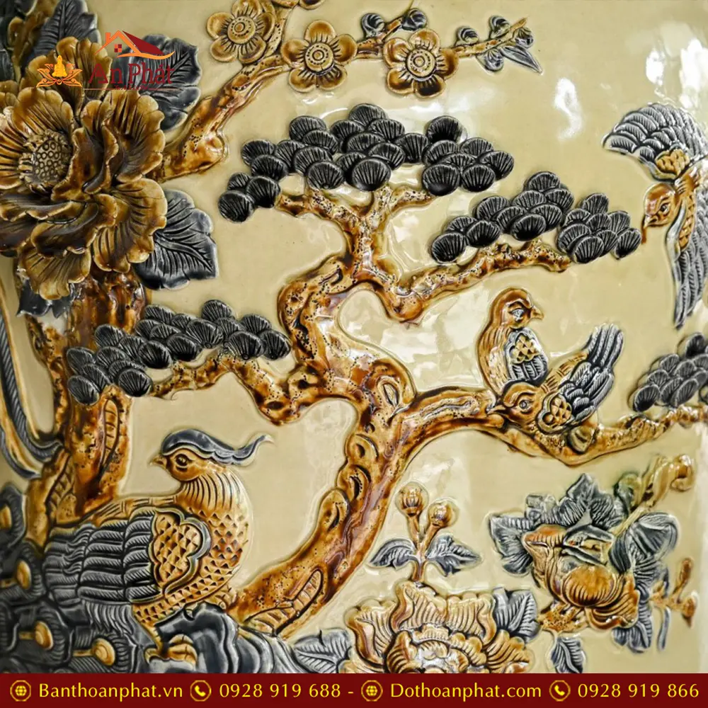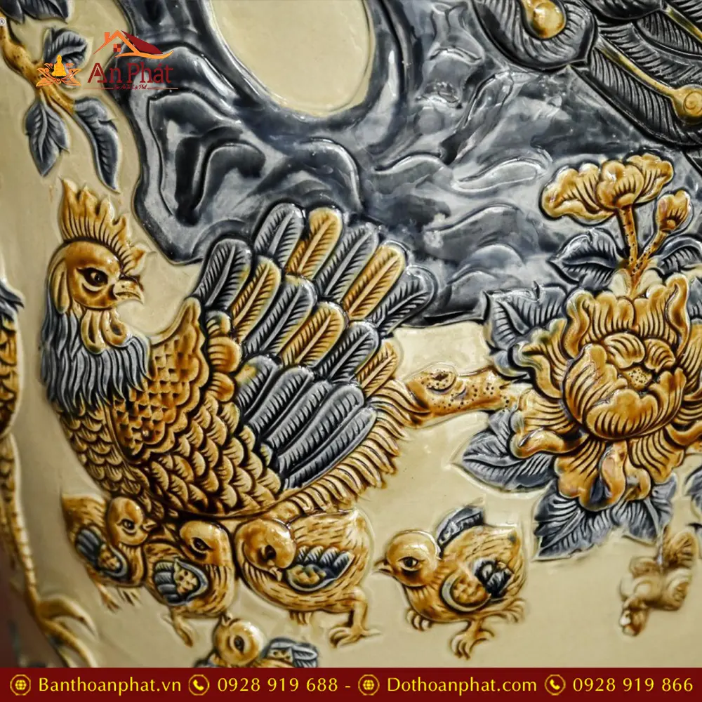 • Chất liệu: Men Hoàng Thổ Đắp Nổi