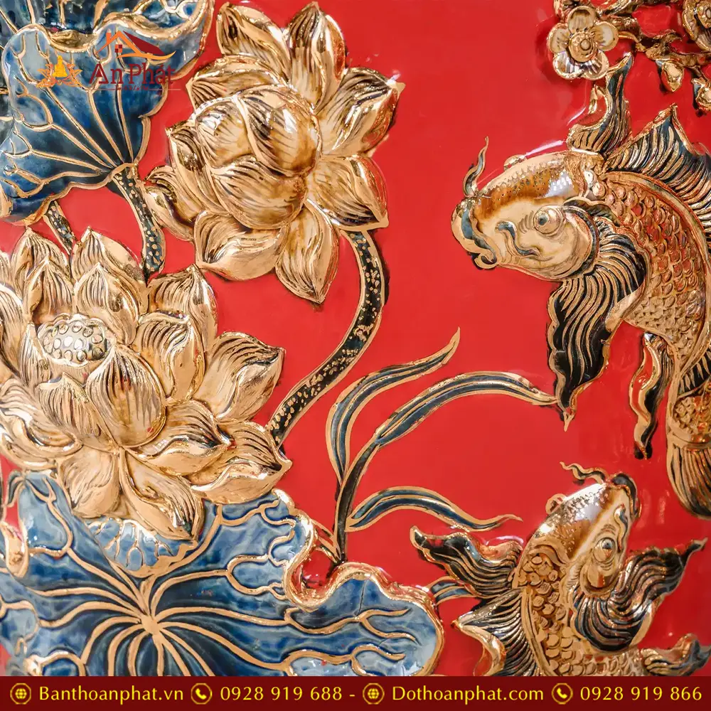 • Chất liệu: Men Màu Đỏ Đắp Nổi Vẽ Vàng 24K