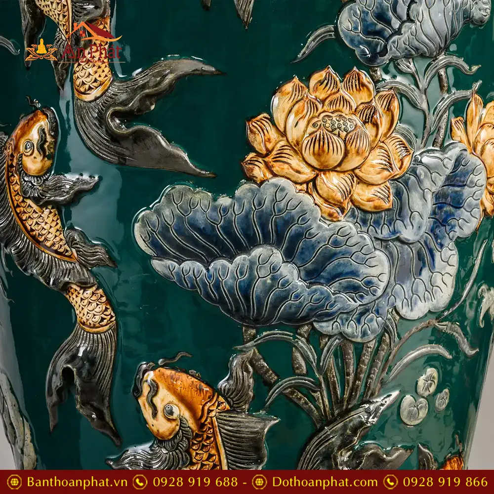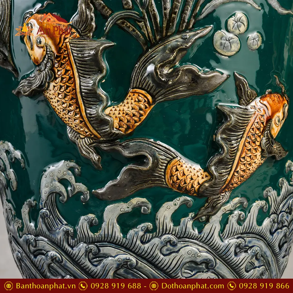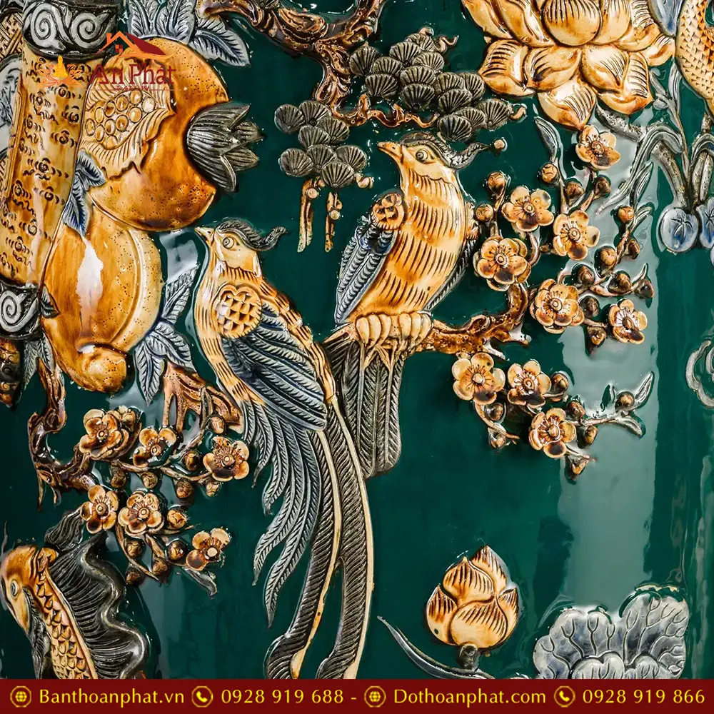 • Chất liệu: Men Màu Xanh Đắp Nổi