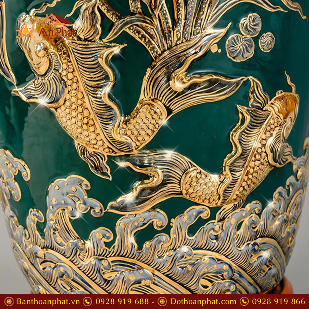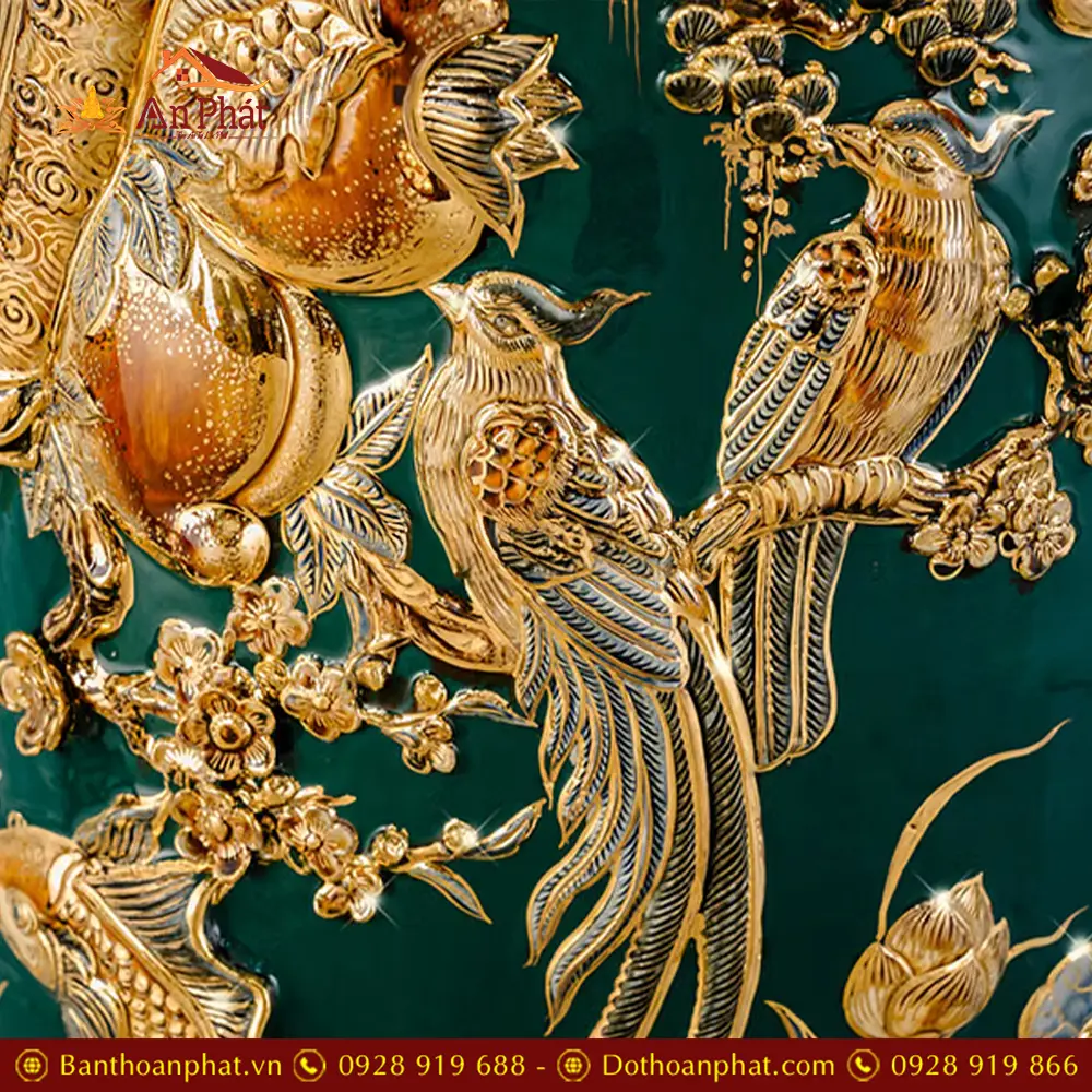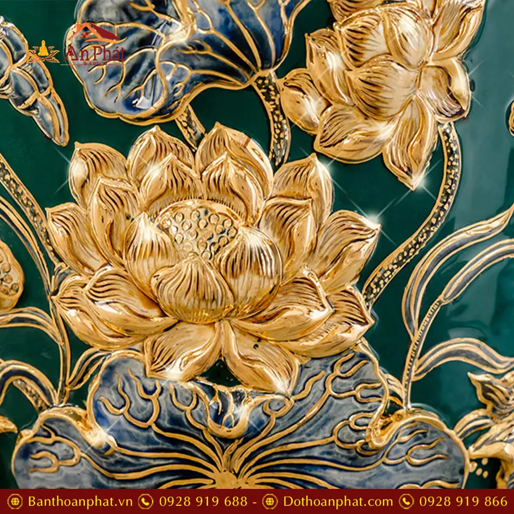 • Chất liệu: Men Xanh Lục Bảo Đắp Nổi Vẽ Vàng 24K