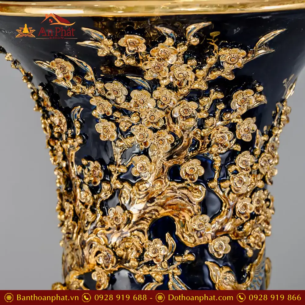 • Chất liệu: Men Xanh Coban Đắp Nổi Vẽ Vàng 24K