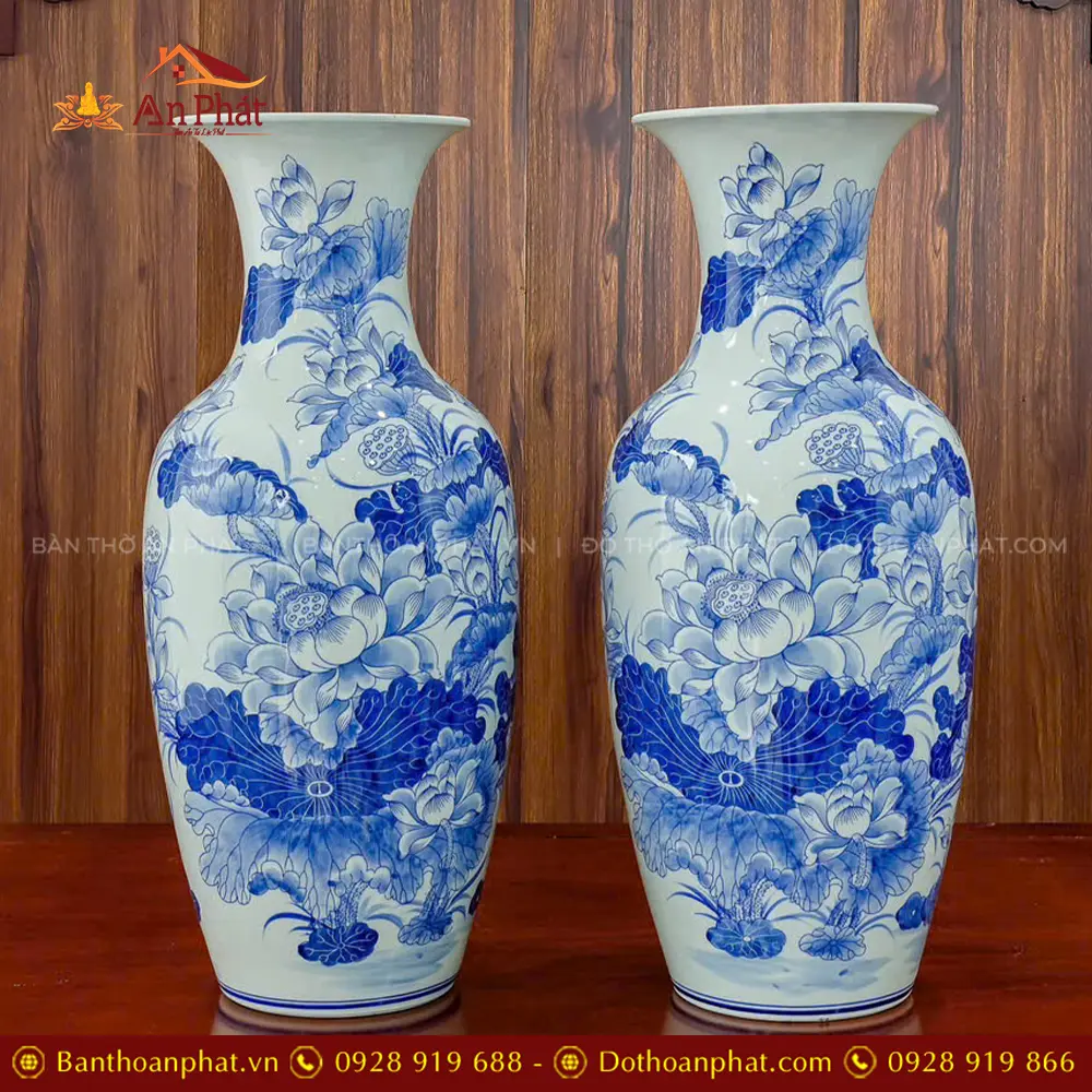 Lộc Bình Hoa Sen Men Lam Gốm Cao Cấp Bát Tràng DT1040