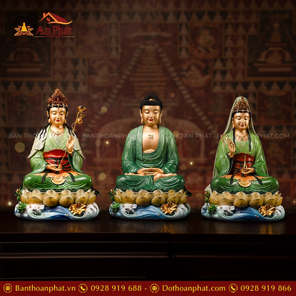 Tôn Tượng Tây Phương Tam Thánh Ngọc Thạch Phủ Đồng Lục Bảo Vân T2428