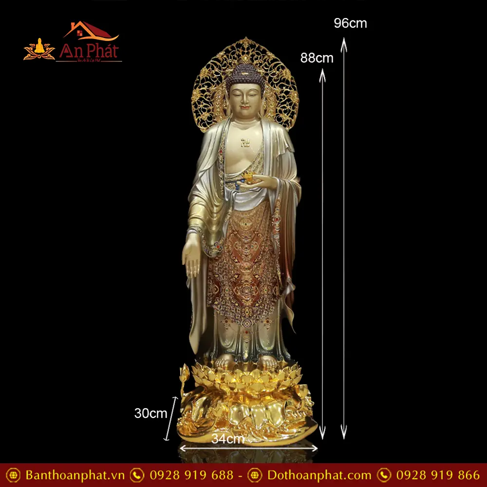 Tượng A Di Đà Bằng Đồng Men Cổ Ấn Bảo Đứng Đế Non Nước Có Lá Bồ Đề T2536