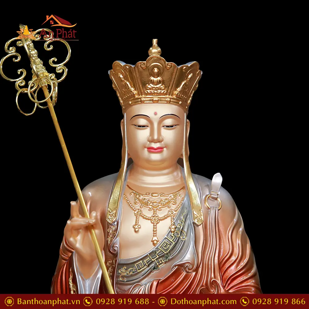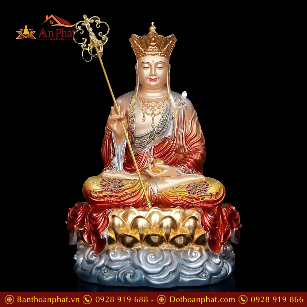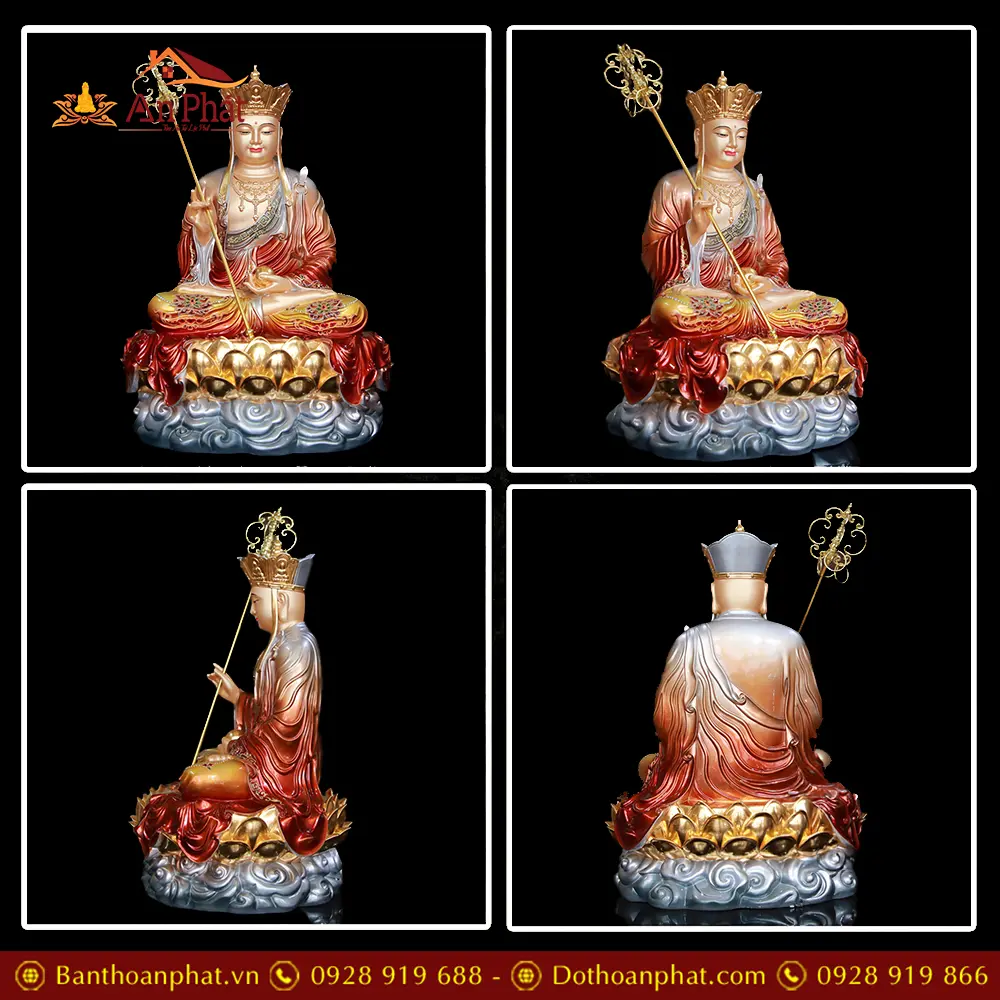 Tượng Địa Tạng Vương Bồ Tát Đồng Ánh Kim Toạ Vân Cao Cấp T2646