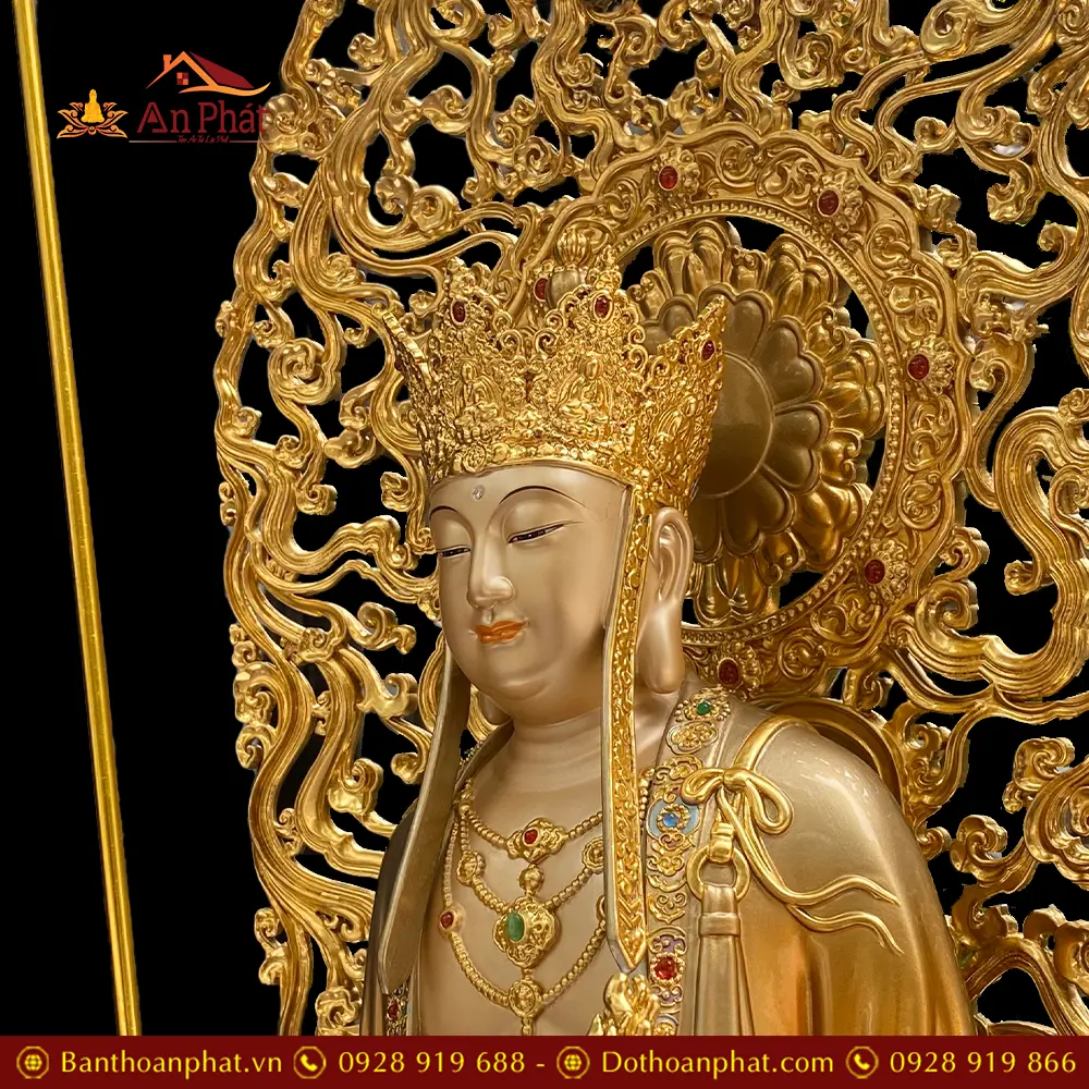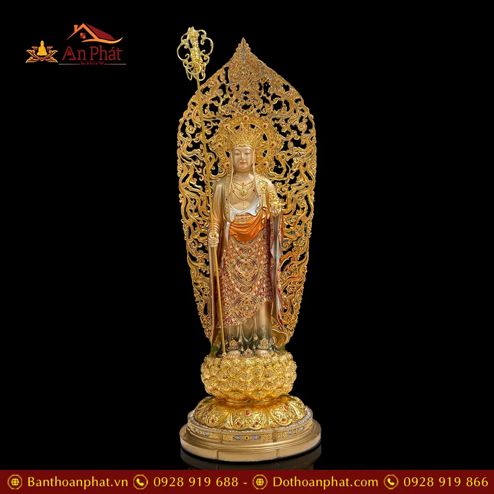 Tượng Địa Tạng Vương Bồ Tát Đồng Dát Vàng Ân Bảo Cao Cấp Nhập Khẩu T2657