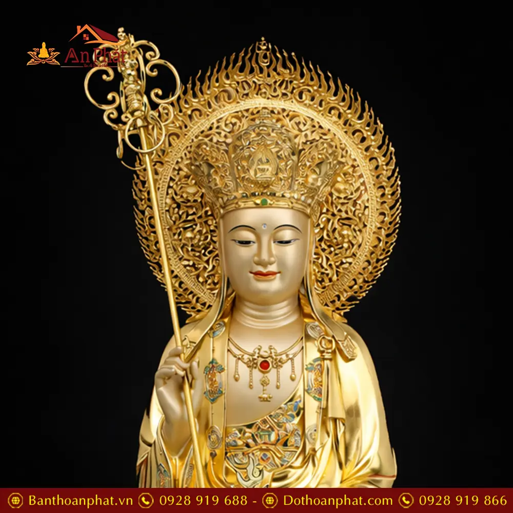 Tượng Địa Tạng Vương Bồ Tát Đồng Dát Vàng Cao Cấp Nhập Khẩu T2650