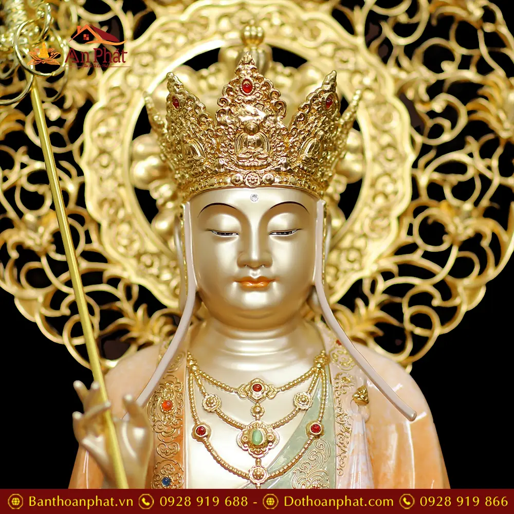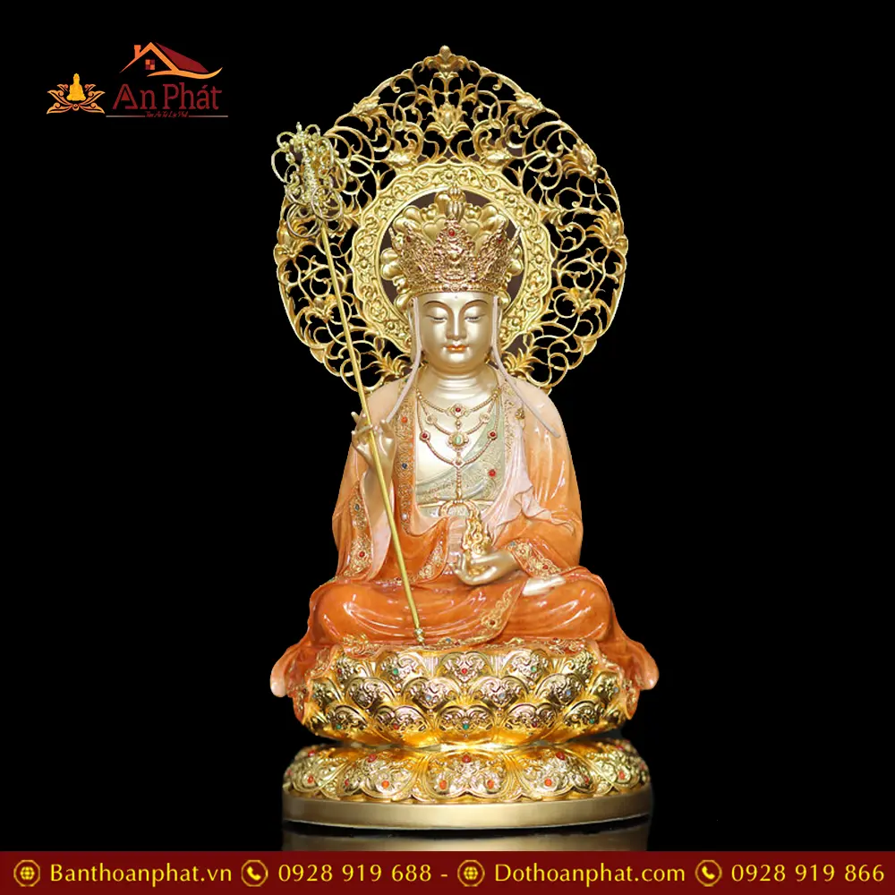 Tượng Địa Tạng Vương Bồ Tát Ngồi Đài Sen Có Lá Đề Bằng Đồng Sơn Men Độ Cao Cấp T2638