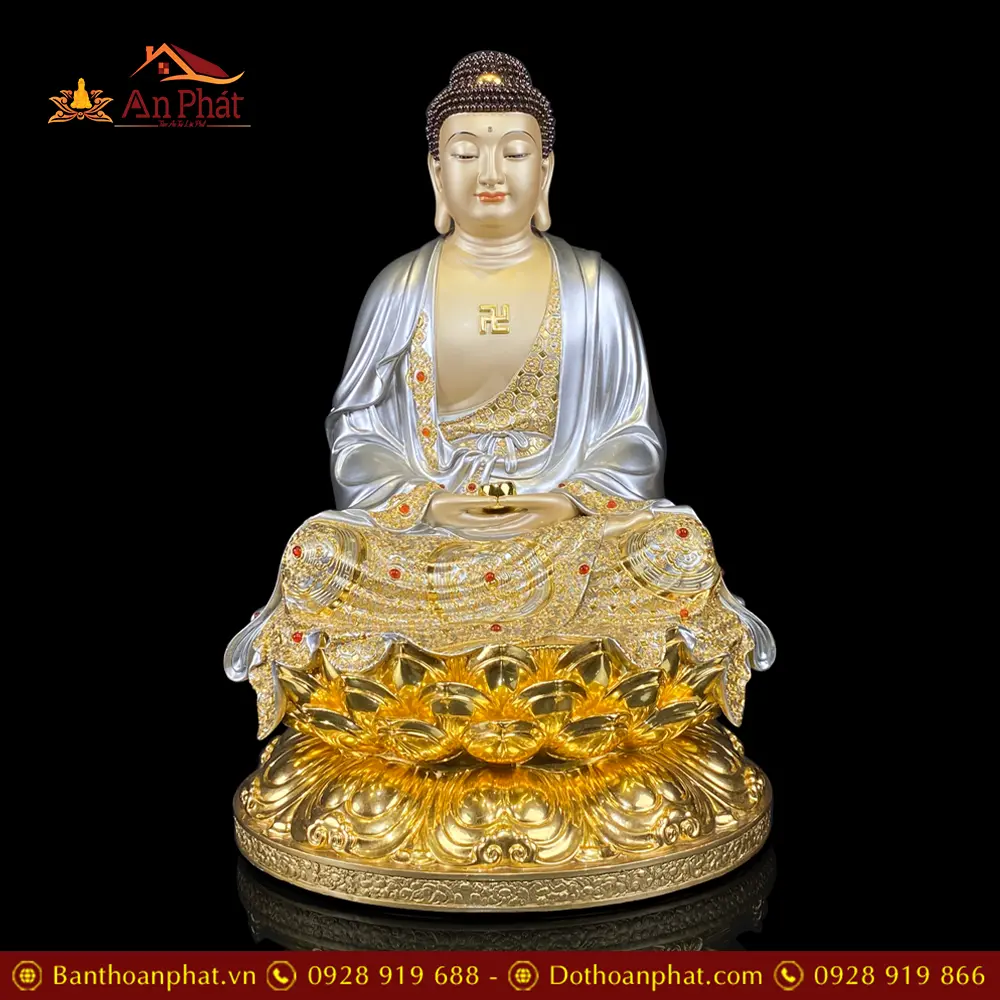 Tượng Phật A Di Đà Bằng Đồng Men Cổ Sơn Bạc Cao Cấp T2537