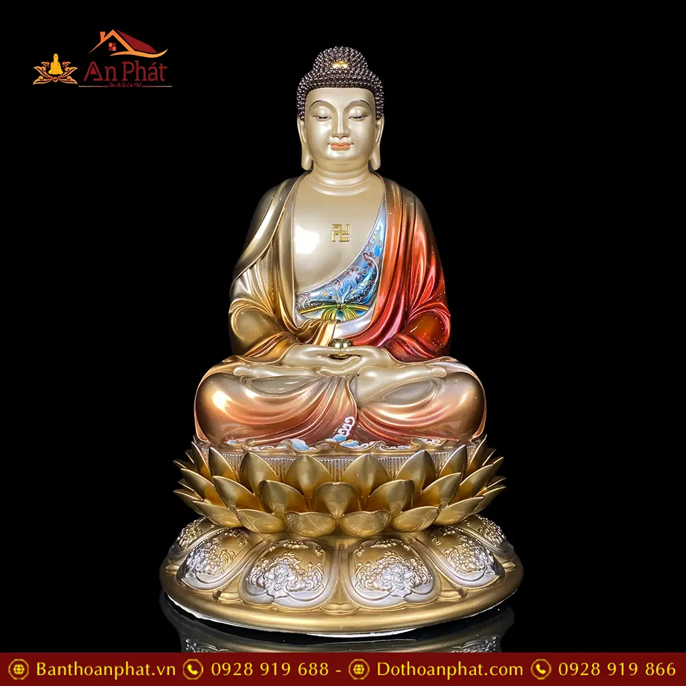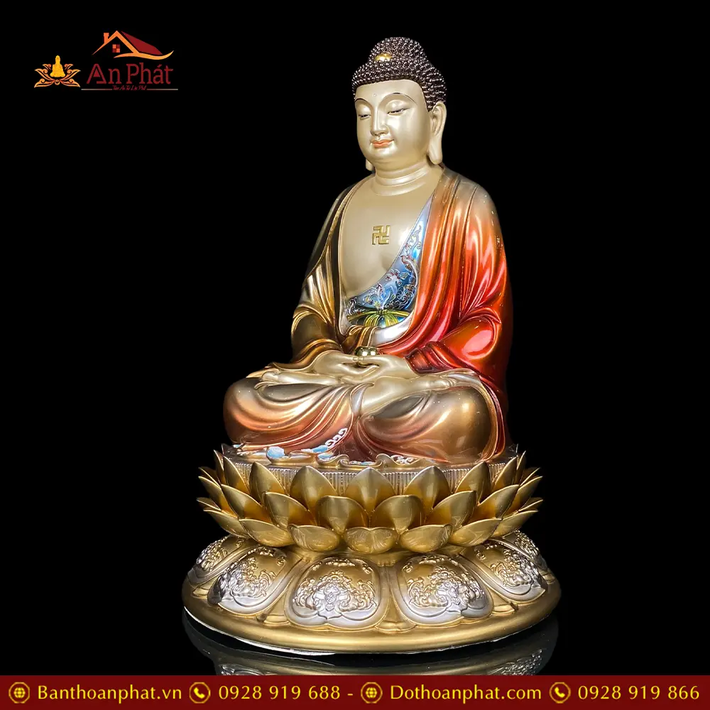 Tượng Phật A Di Đà Ngồi Đế Hoa Sen Bằng Đồng Cao Cấp T2542
