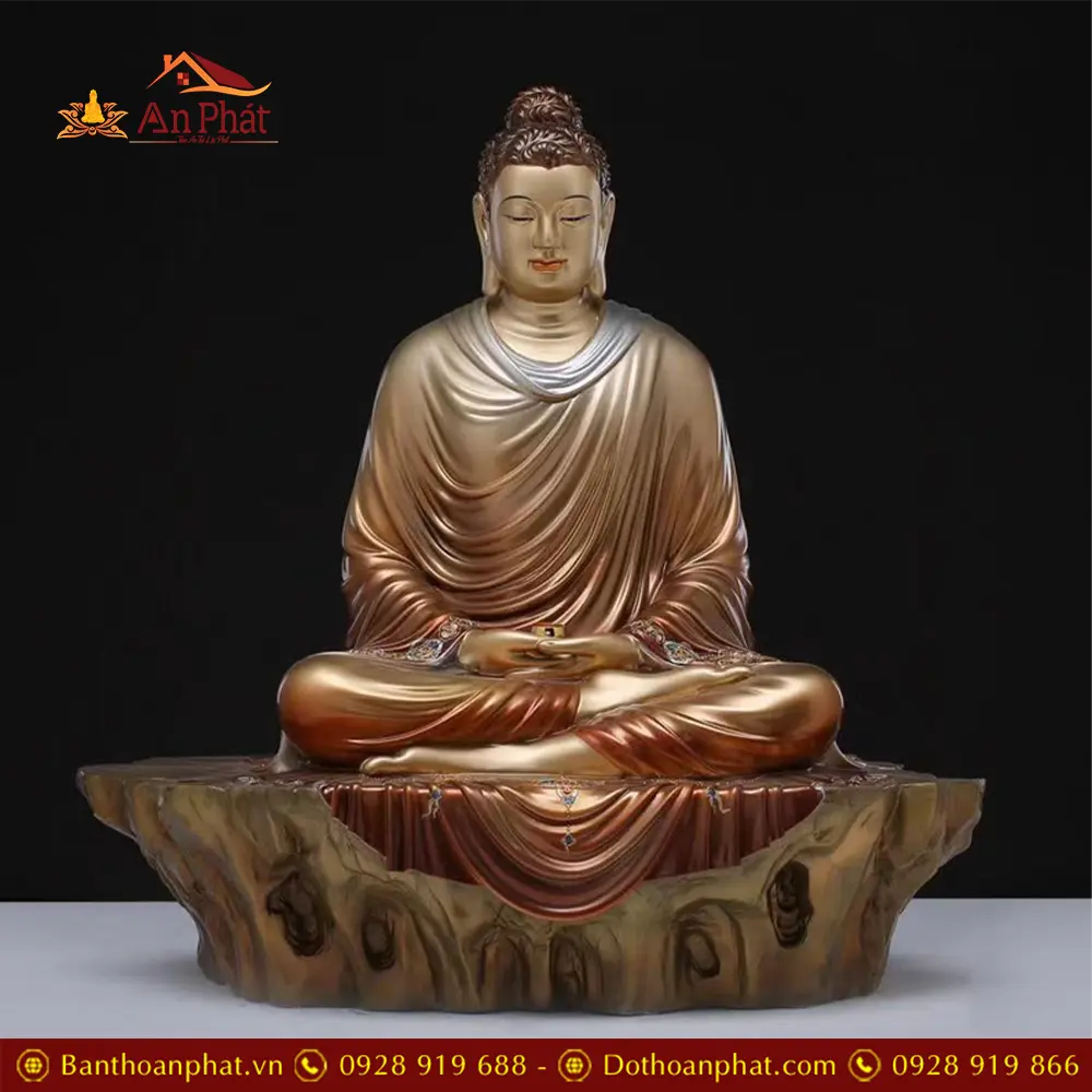 Tượng Phật Bổn Sư Thích Ca Ngồi Tịnh Tâm Bằng Đồng Men Cổ Cao Cấp T2627
