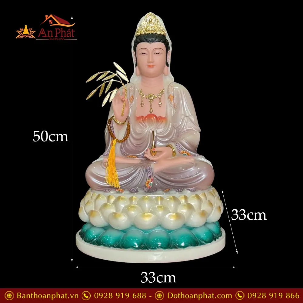 Tượng Quan Âm Bồ Tát Bột Đá Sơn Màu Tím Dáng Ngồi Đài Sen 3 Tầng T2602