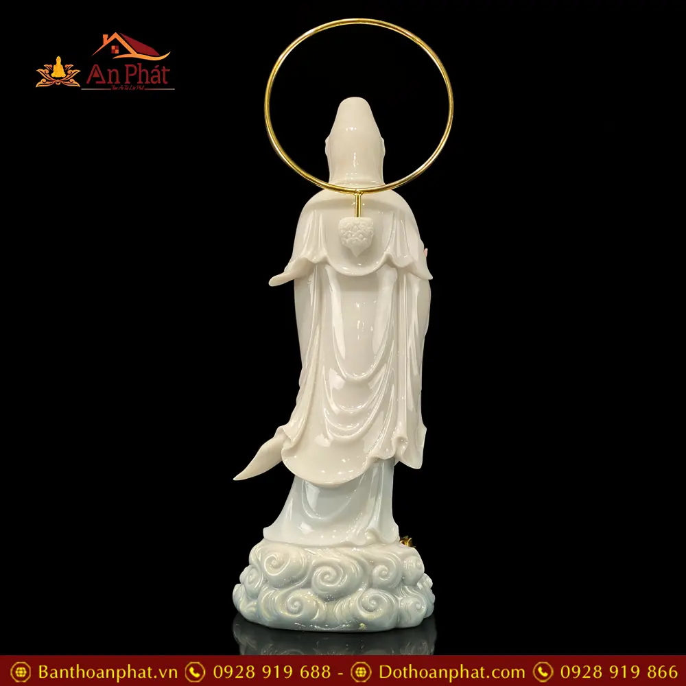 Tượng Quan Âm Bồ Tát Đứng Đế Mây Sơn Trắng Cao Cấp T2586