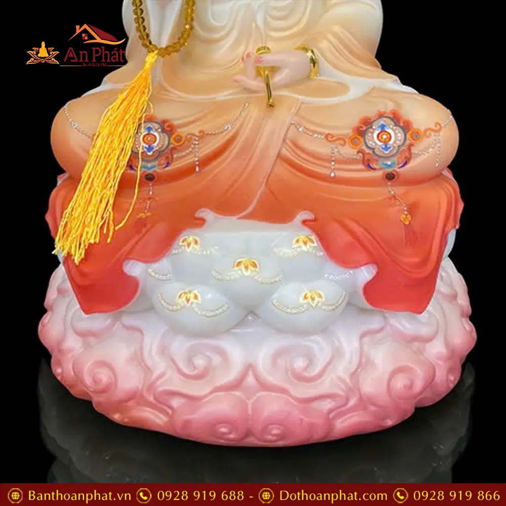 Tượng Quan Thế Âm Bồ Tát Ngồi Đế Mây Bằng Bột Đá Cao Cấp Sơn Màu Đỏ T2596