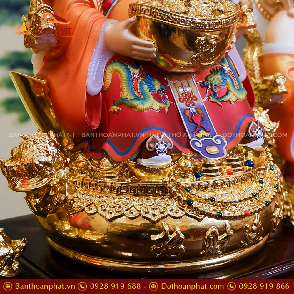 Tượng Thần Tiền Quan Lộc Song Long Ngọc Thạch Phủ Đồng Dát Vàng T2519