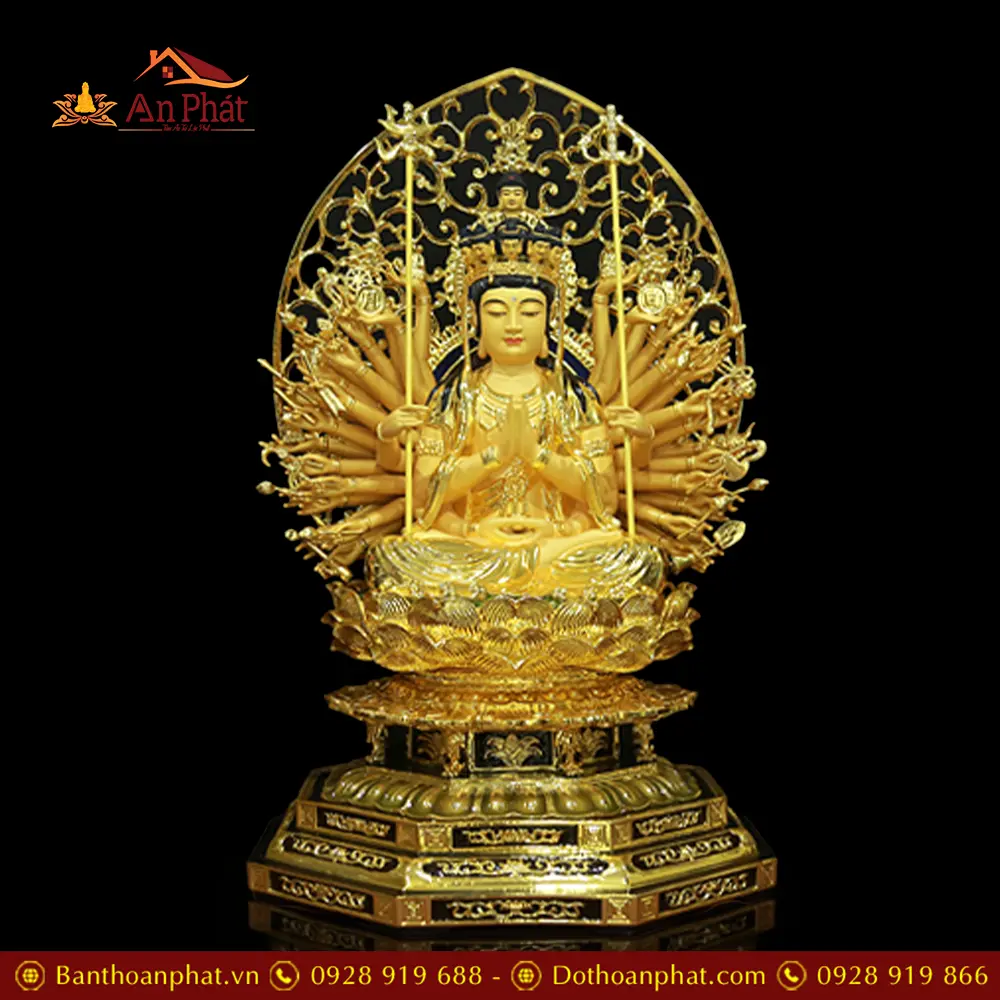 Tượng Thiên Thủ Thiên Nhãn Đồng Cao Cấp Nhập Khẩu Dáng Ngồi Có Lá Đề T2675