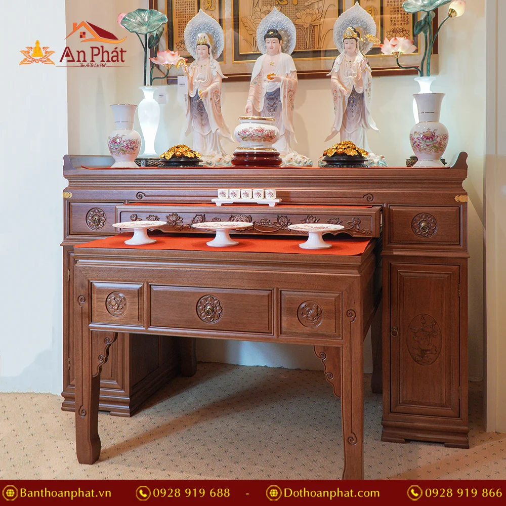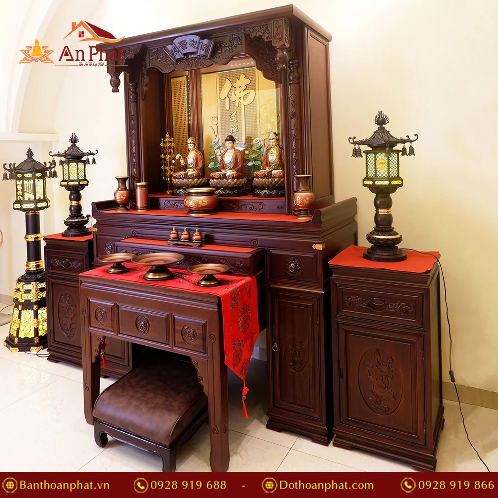 Ban Thờ Gỗ Cẩm Khắc Kinh Phật Màu Nâu Đỏ BT8702 An Phát