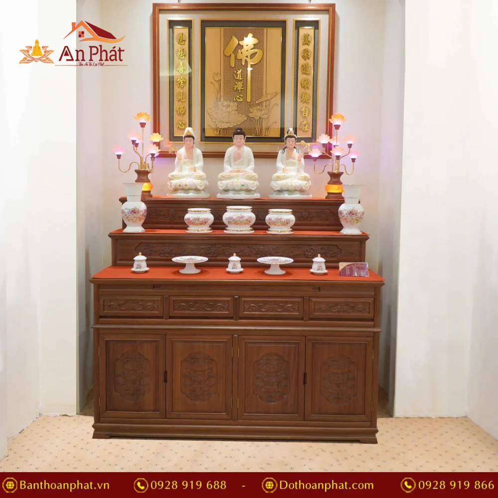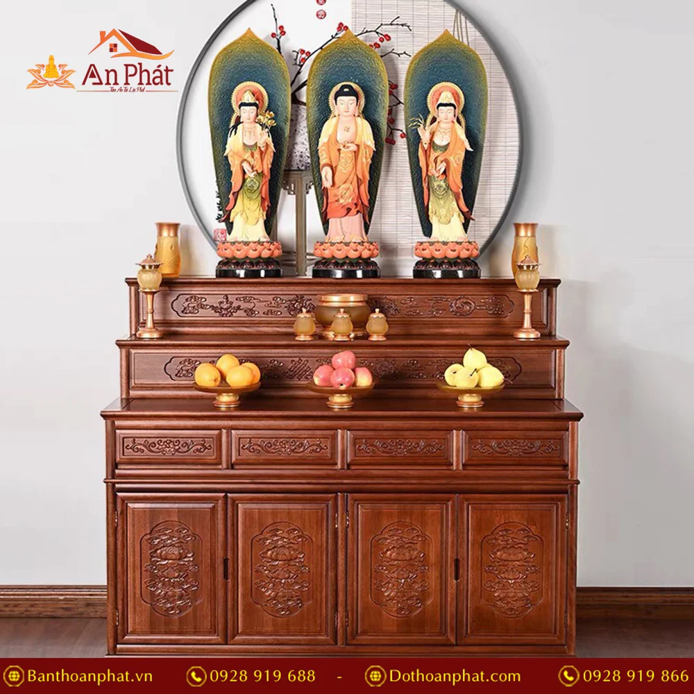 Ban thờ tam cấp Bát bảo Kiết tường màu nguyên bản BT8704 An Phát