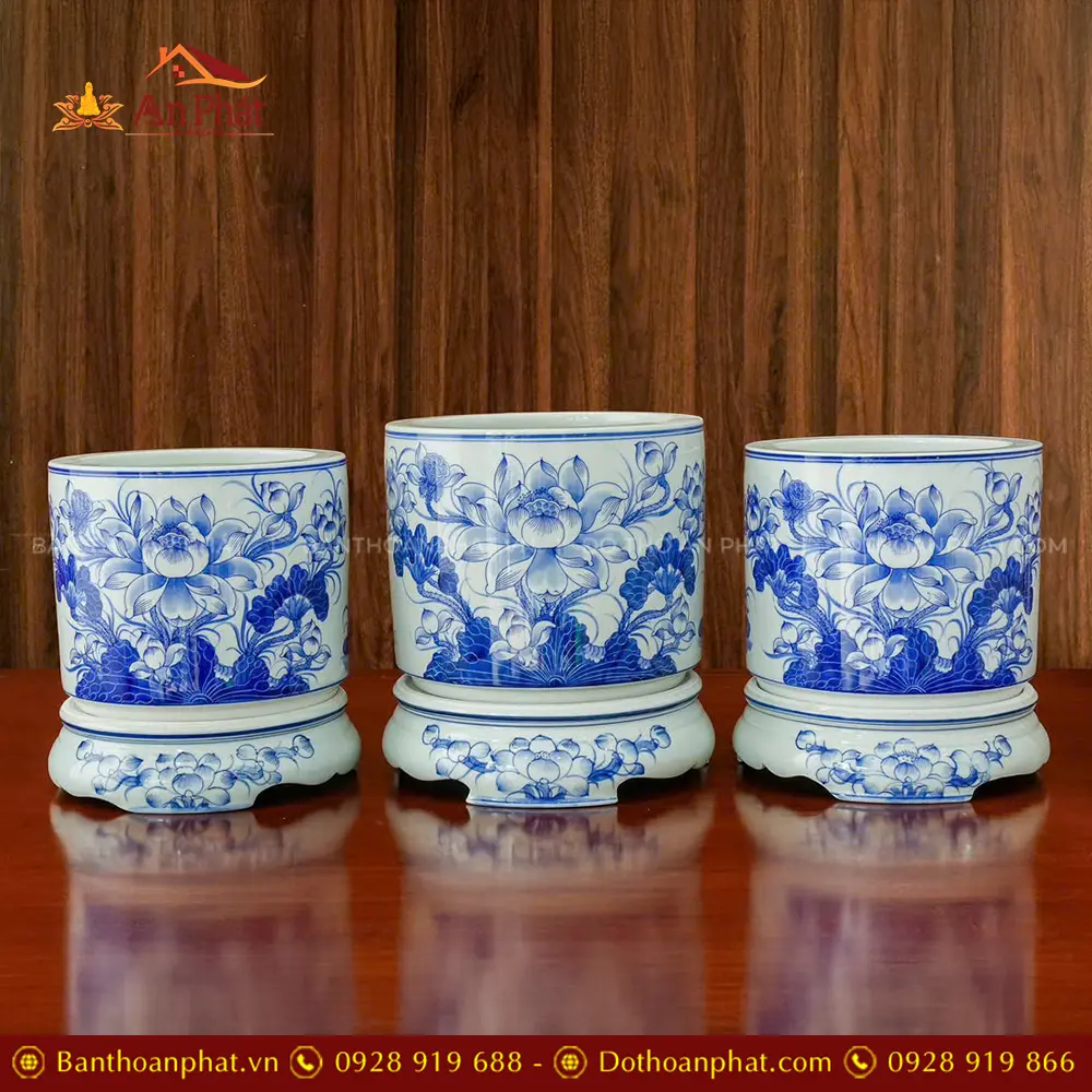 Bát Hương Bát Tràng Hoa Sen Men Lam Cao Cấp DT997