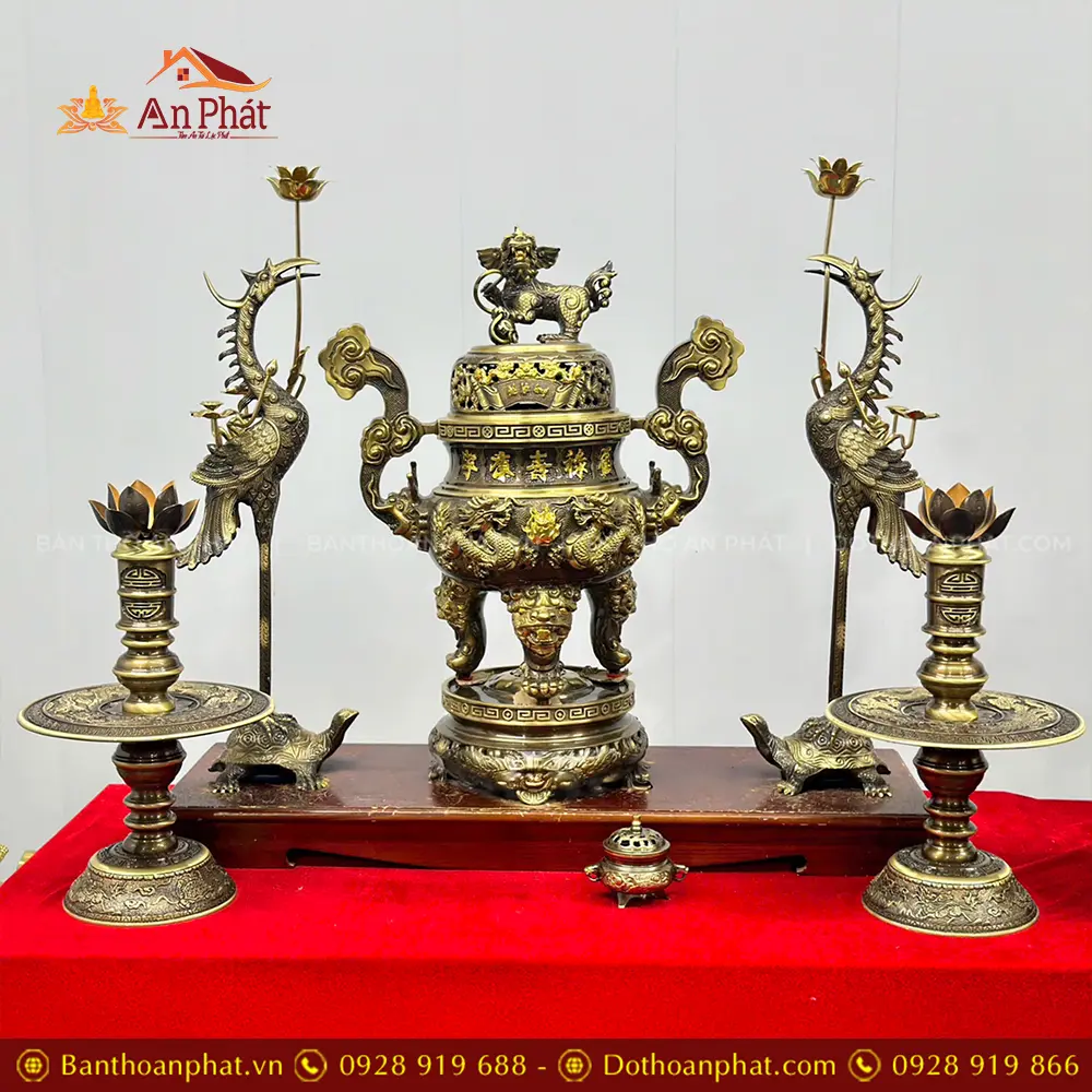 Bộ Đỉnh Hạc Cao Cấp Bằng Đồng Mẫu Cuốn Thư DT1090