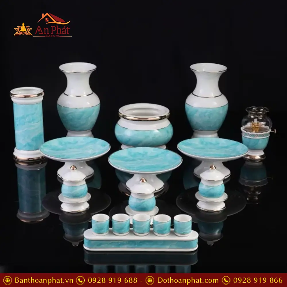 Bộ Đồ Thờ Sứ Nhập Khẩu Giả Đá Xanh Dương BDT089