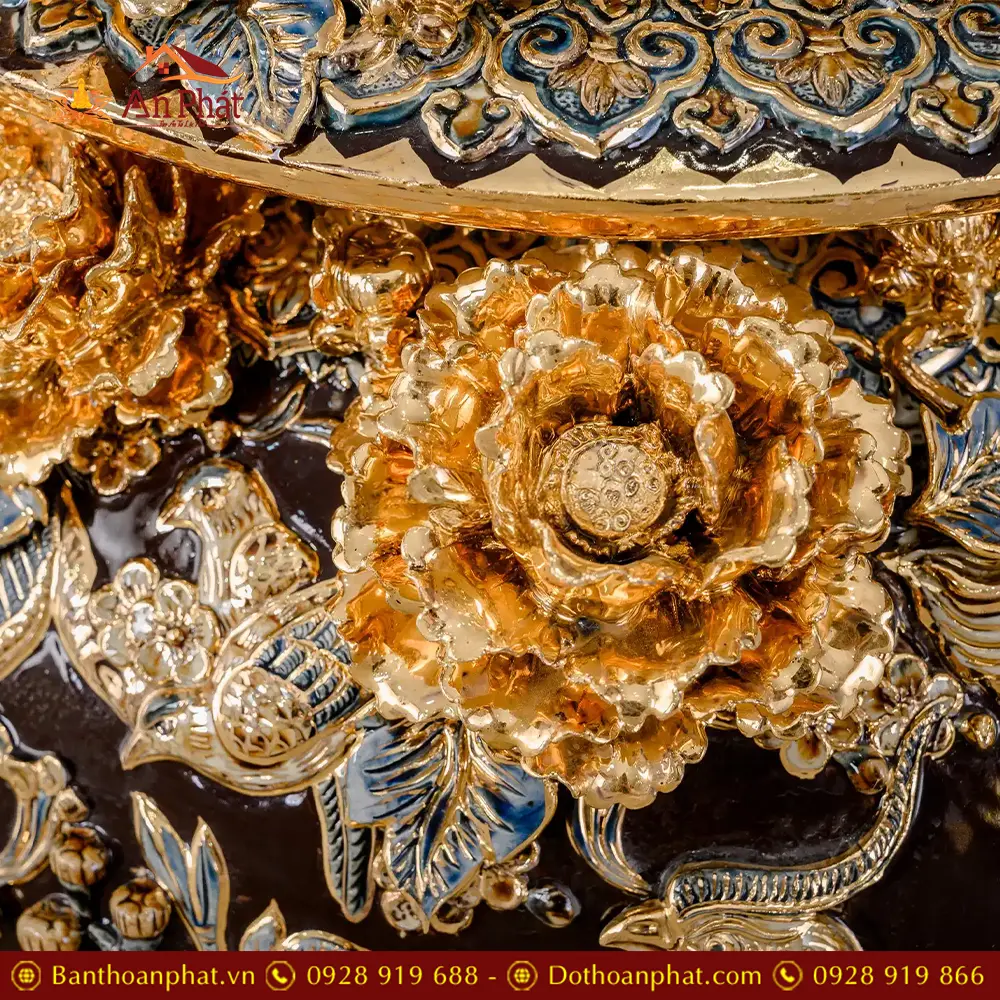 Choé Thờ Phong Thuỷ Cao Cấp Men Nâu Công Đào Vẽ Vàng DT980