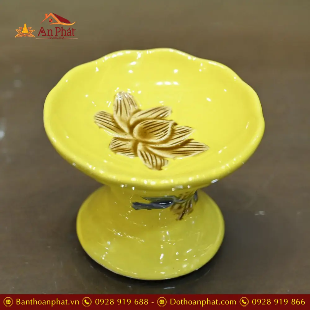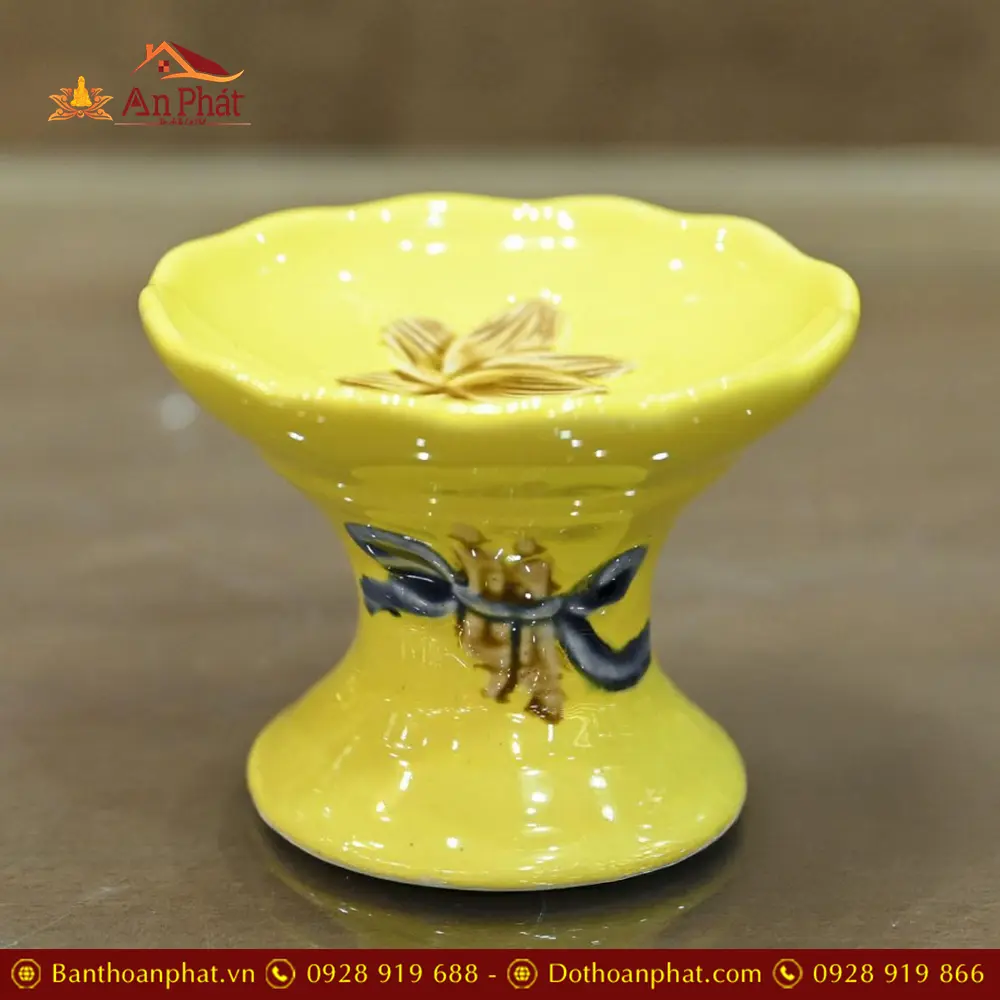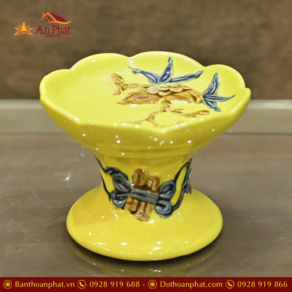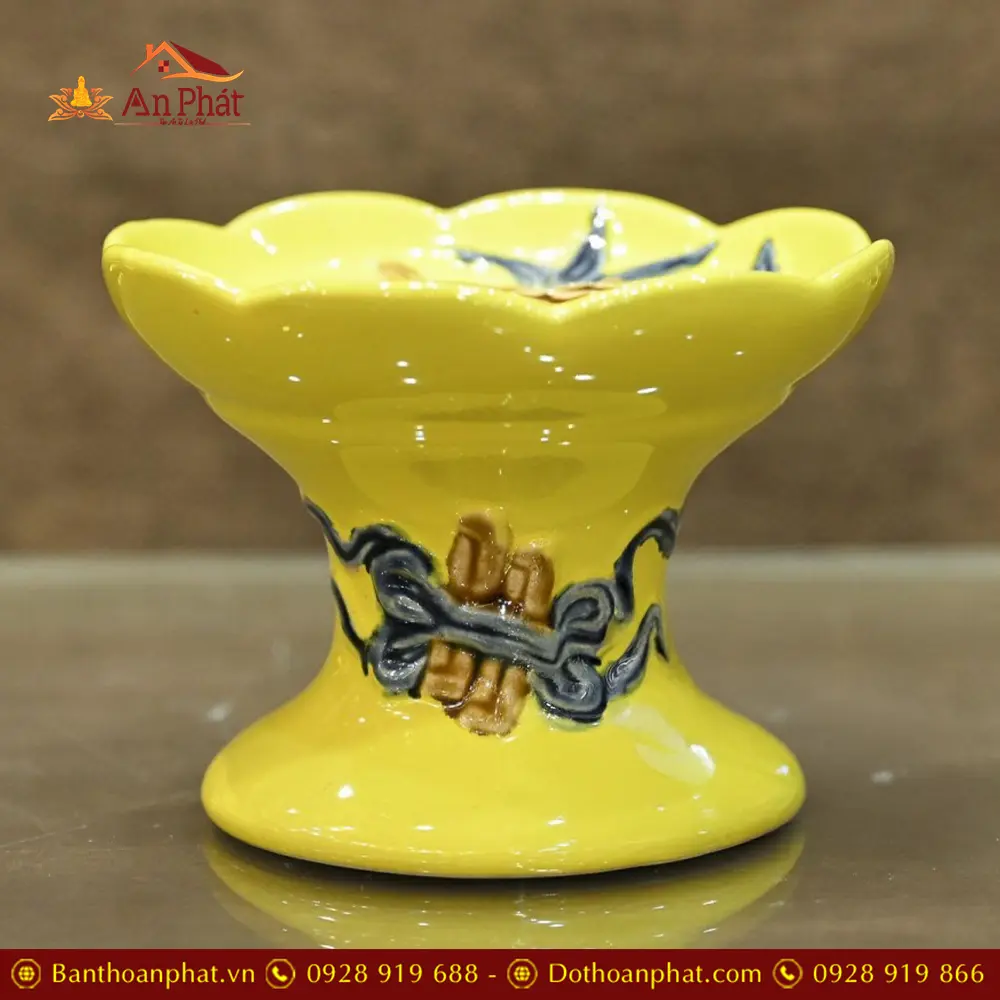 Đế Nến Bát Tràng Men Màu Vàng Đắp Nổi DT872