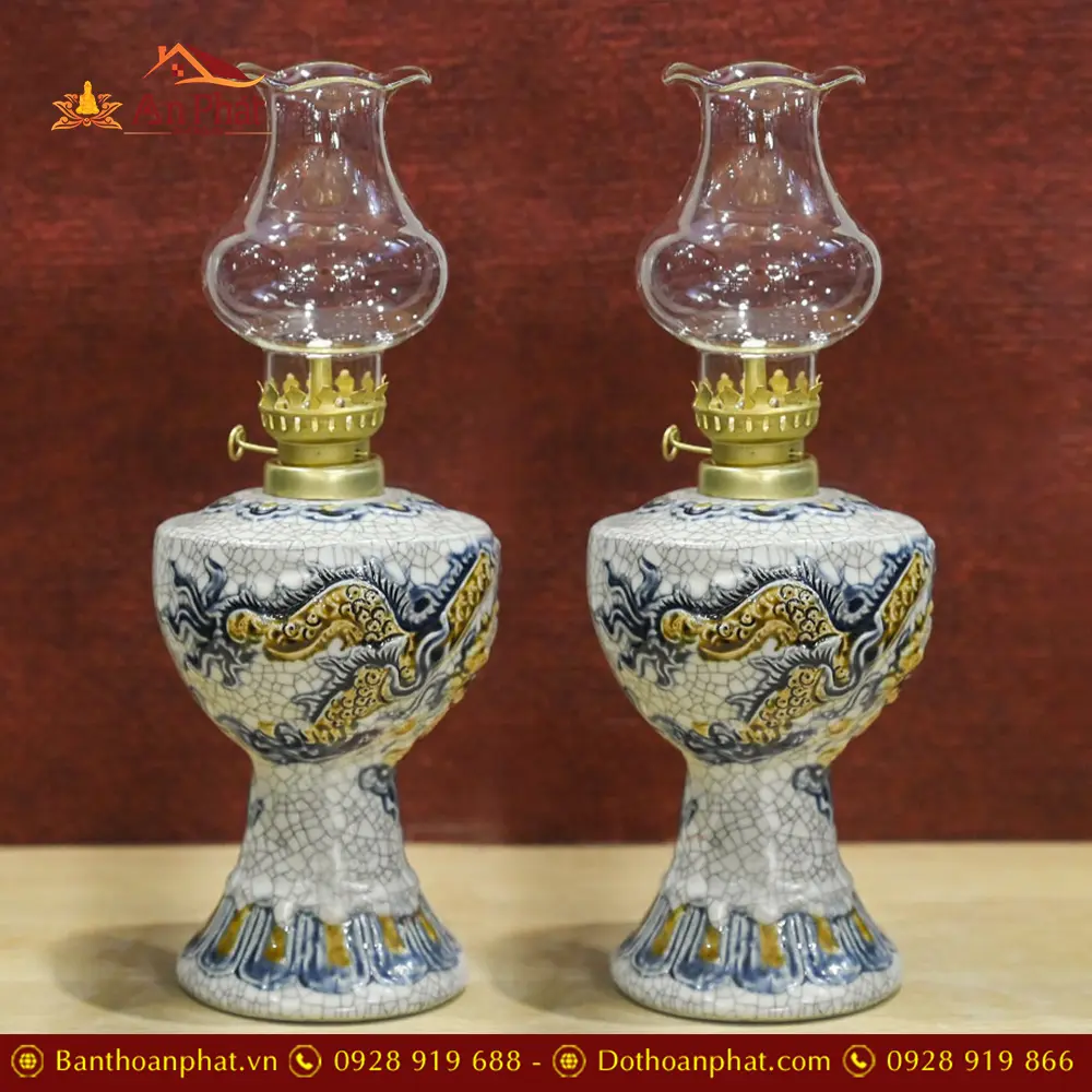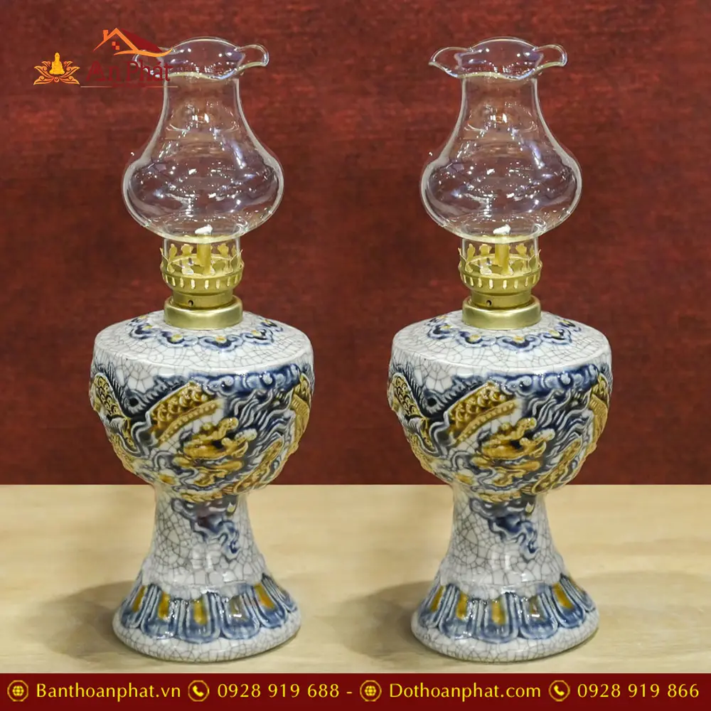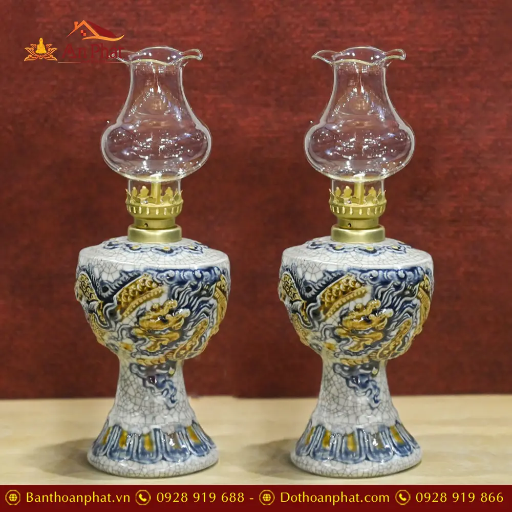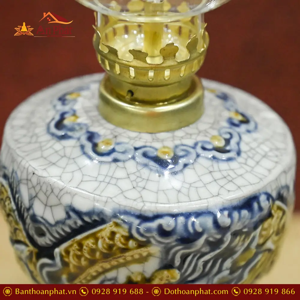 Đèn Dầu Thờ Men Rạn Đắp Nổi Rồng Gốm Bát Tràng DT761