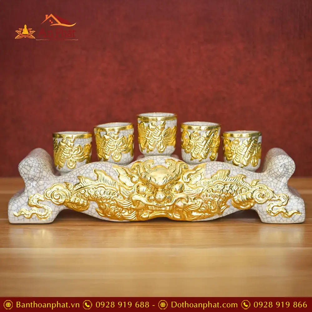 • Chất liệu: Men Rạn Đắp Nổi Dát Vàng