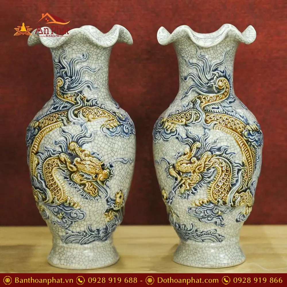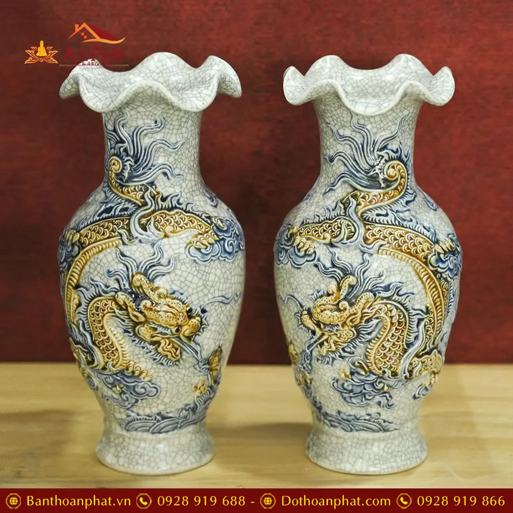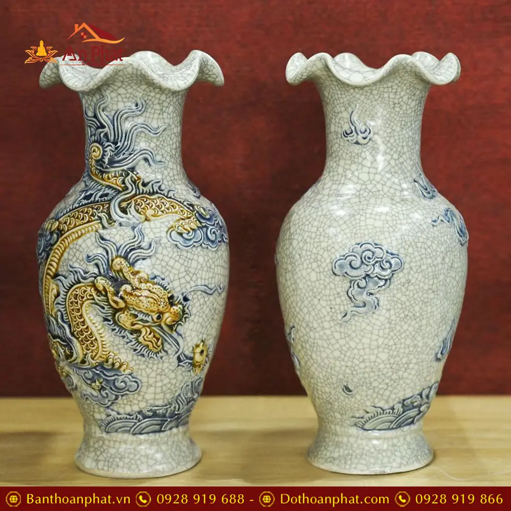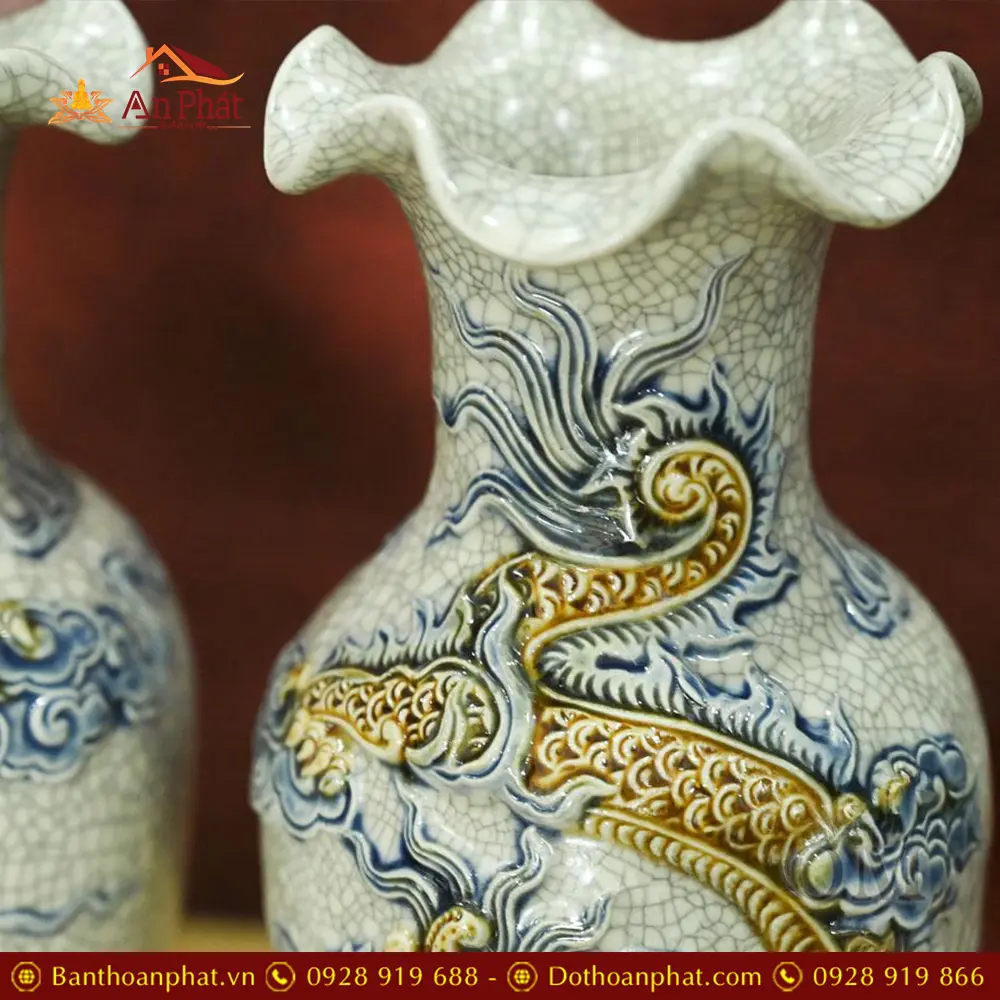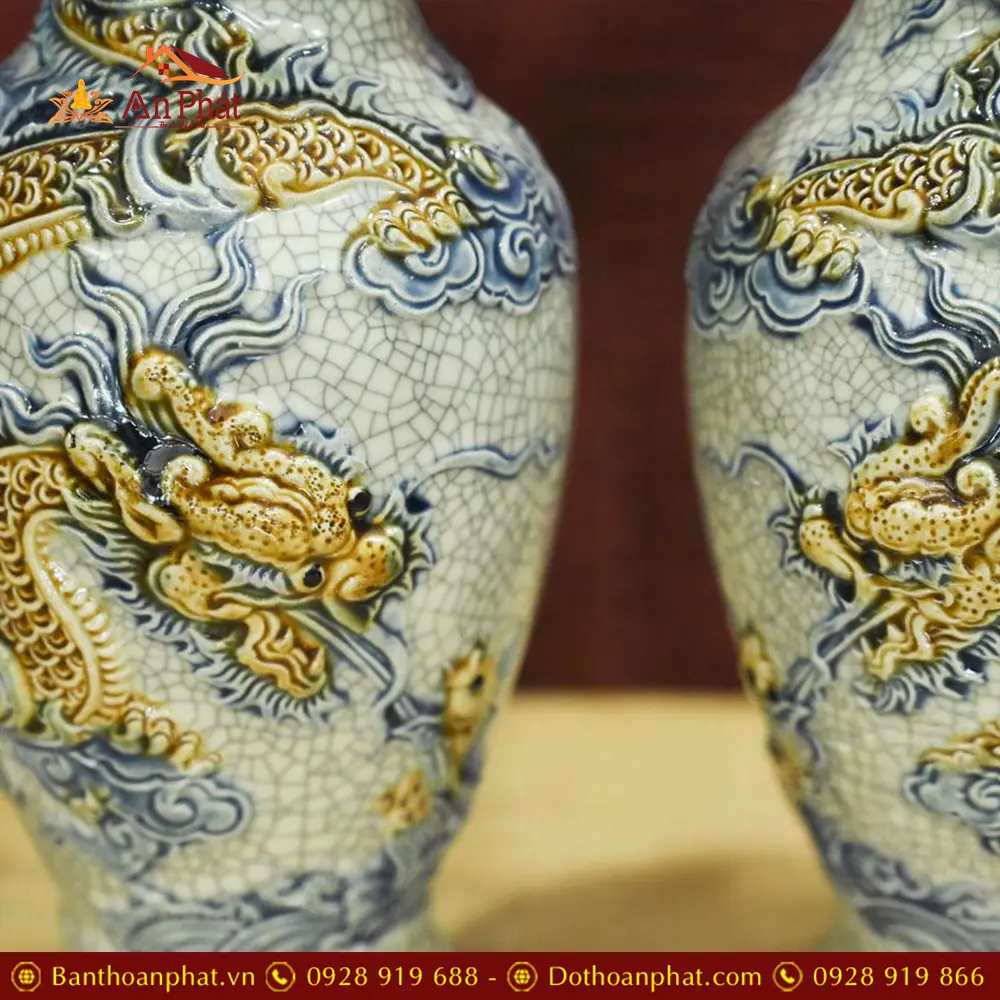 Lọ Hoa Men Rạn Đắp Nổi Rồng Gốm Bát Tràng DT707
