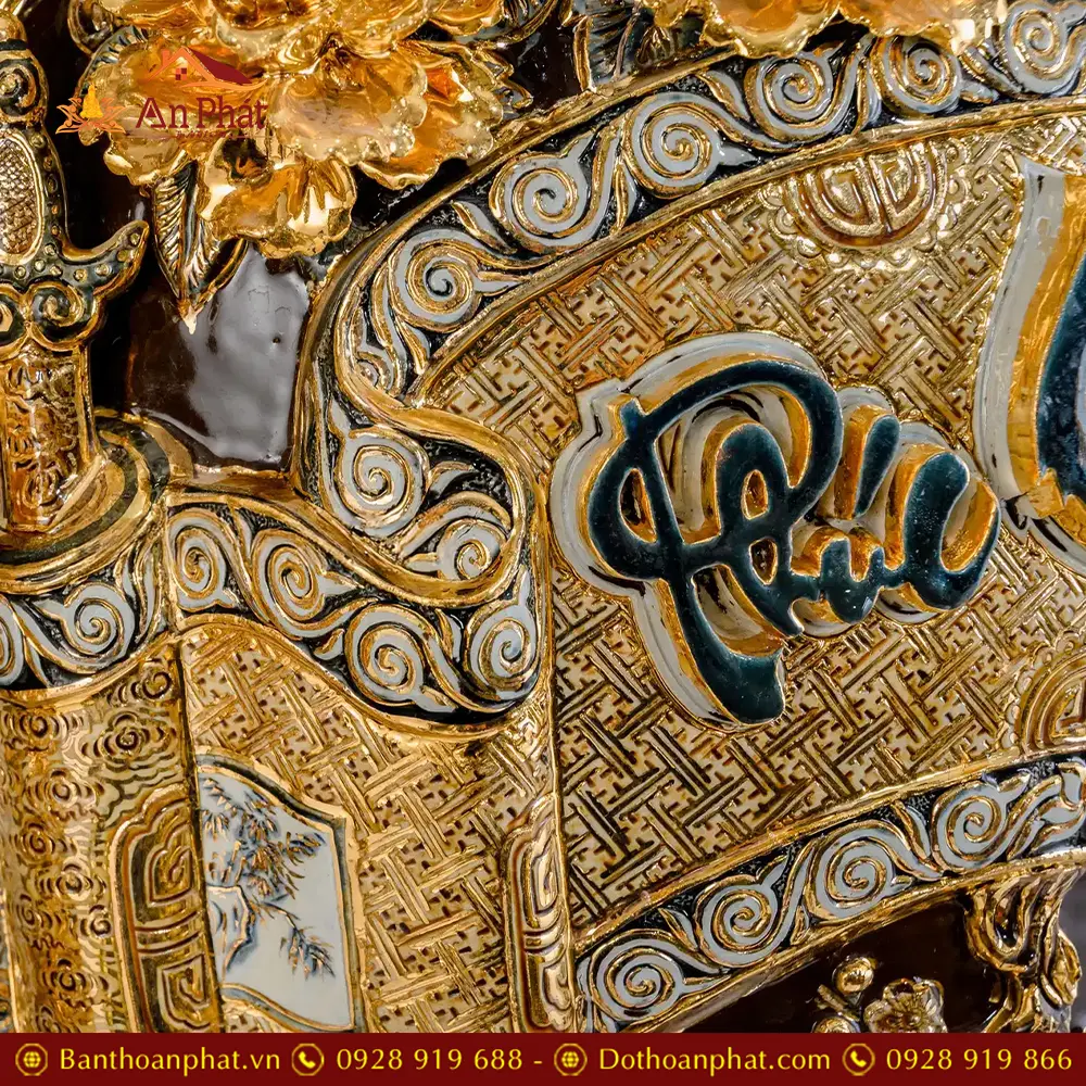 • Chất liệu: Men Nâu Đắp Nổi Vẽ Vàng 24K