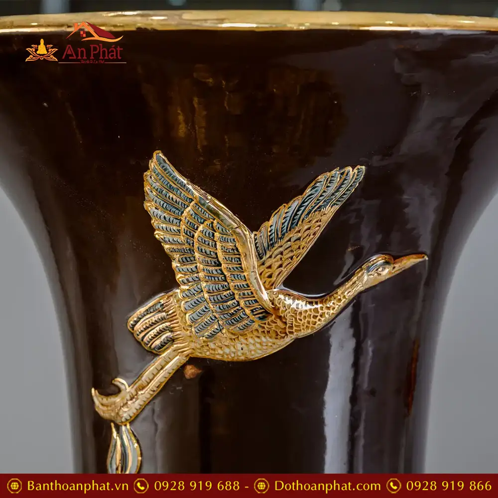 Lọ Lộc Bình Cao Cấp Vẽ Vàng Phúc Lộc Thọ Đắp Nổi Men Nâu Bát Tràng DT963