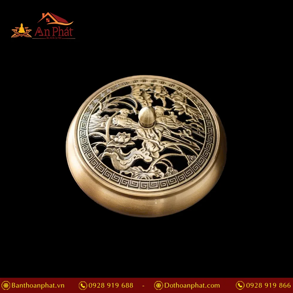 Lư Xông Trầm Bằng Đồng Nắp Hồ Sen Vịt PK9527 An Phát