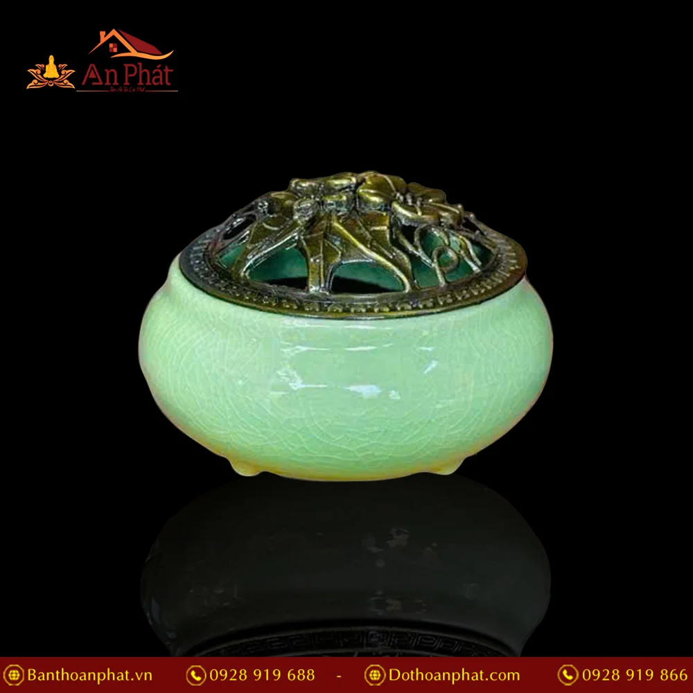 Lư Xông Trầm Gốm Vân Rạn Xanh Lá PK9521 An Phát