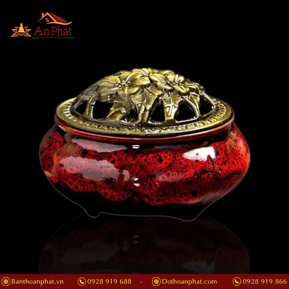 Lư Xông Trầm Hương Gốm Vân Rạn Nâu Đỏ PK9516 An Phát