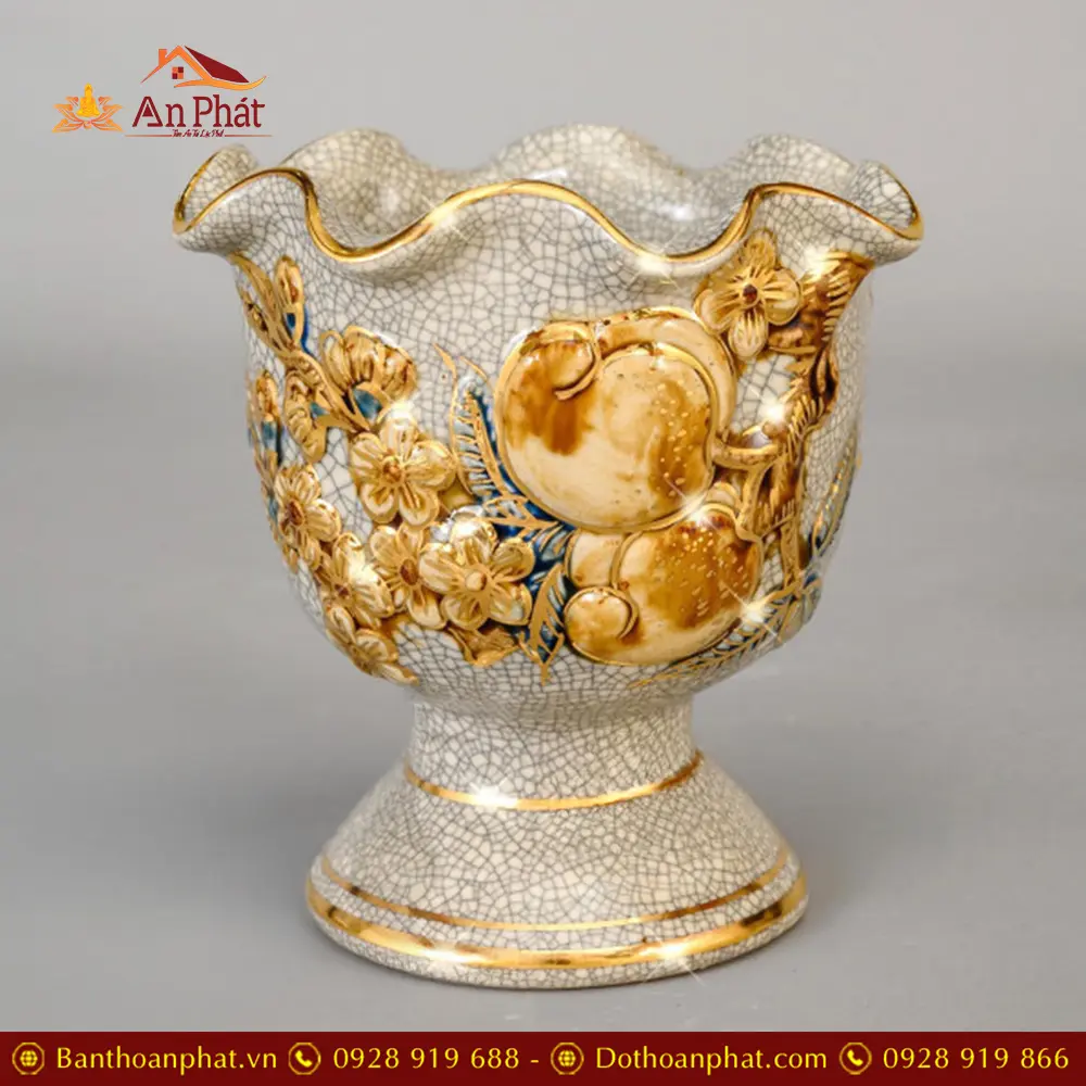 Ly Phật Thủ Bát Tràng Men Rạn Đắp Nổi Vẽ Vàng DT884
